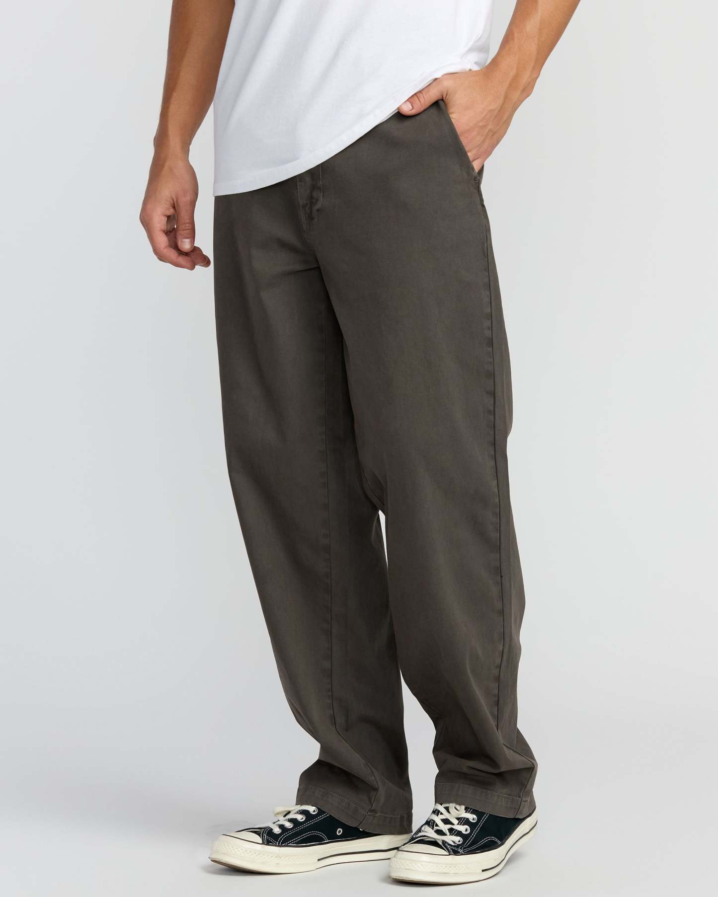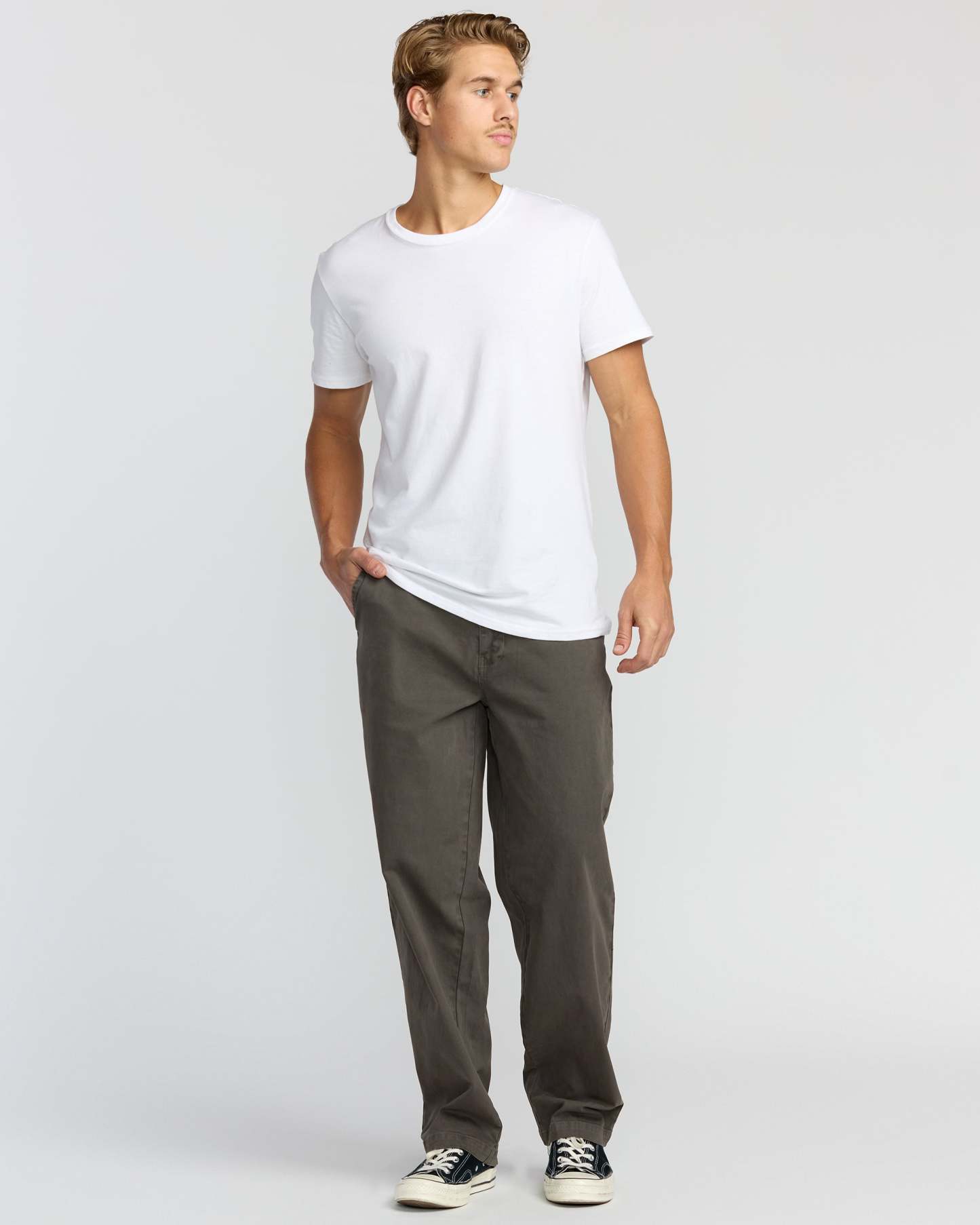 Our vintage-washed chinos blend structured workwear style with everyday comfort. The peached cotton twill fabric feels soft against skin, while practical pockets and a slim straight fit keep things clean and classic. Featured here in the Black colorway.