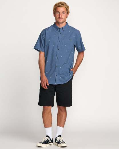 All Day Jacquard Short Sleeve Shirt - Deep Blue