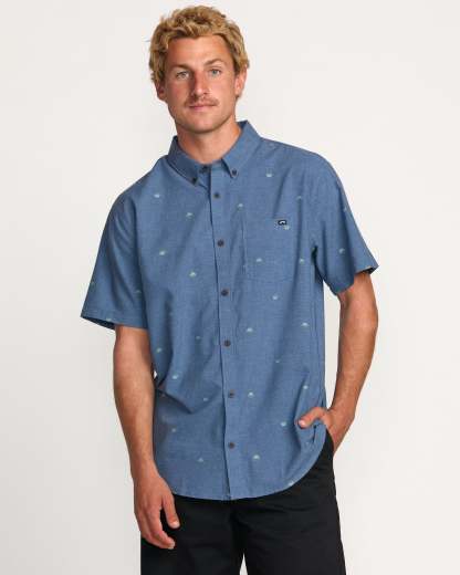For adventures that stretch from dawn to dusk, the All Day Jacquard Short Sleeve Shirt weaves a regular fit from premium cotton and partially recycled polyester. Garment-washed for unrivaled comfort, it's styled with a button-down collar and branded pocket for timeless versatility. Featured here in the Deep Blue colorway.