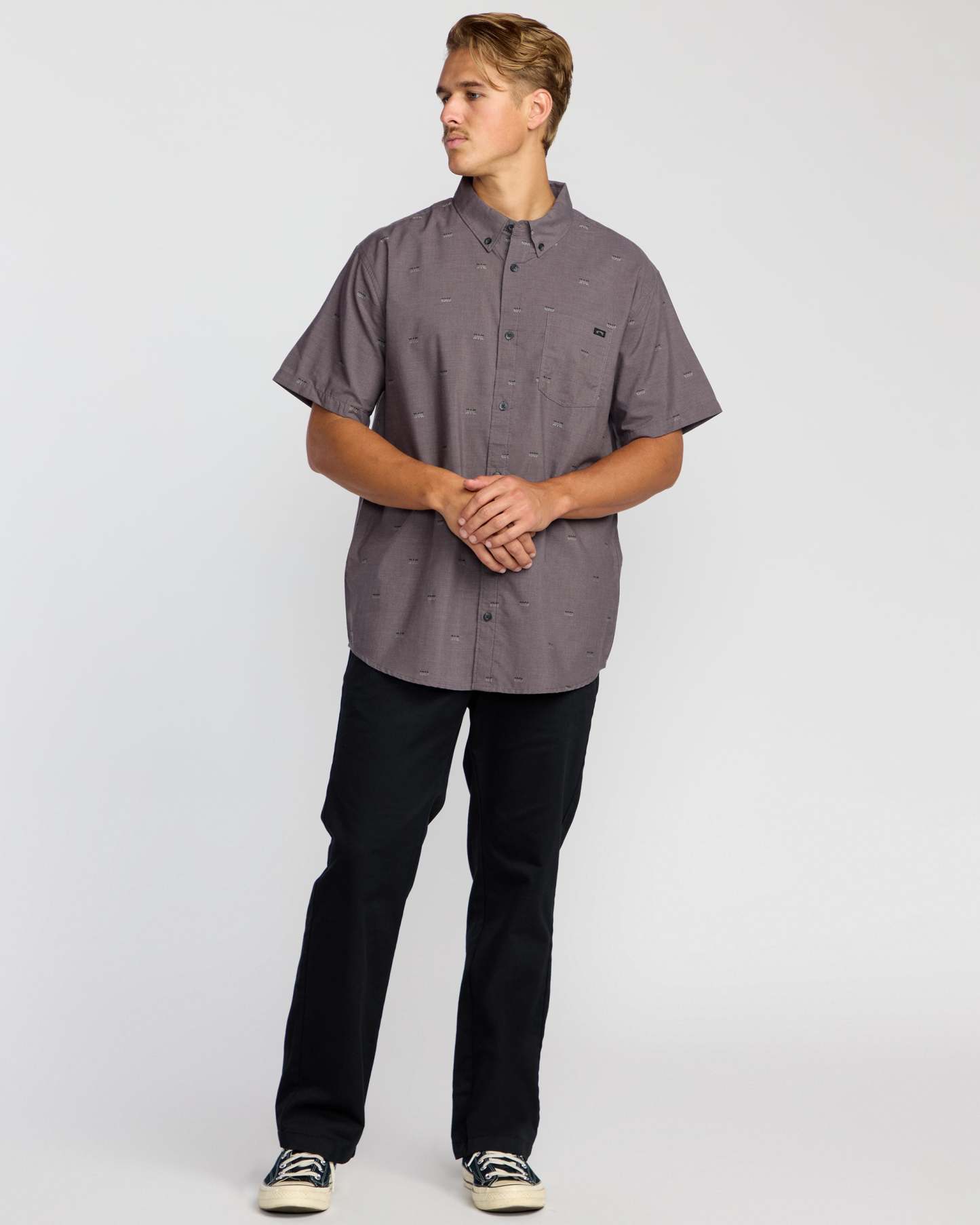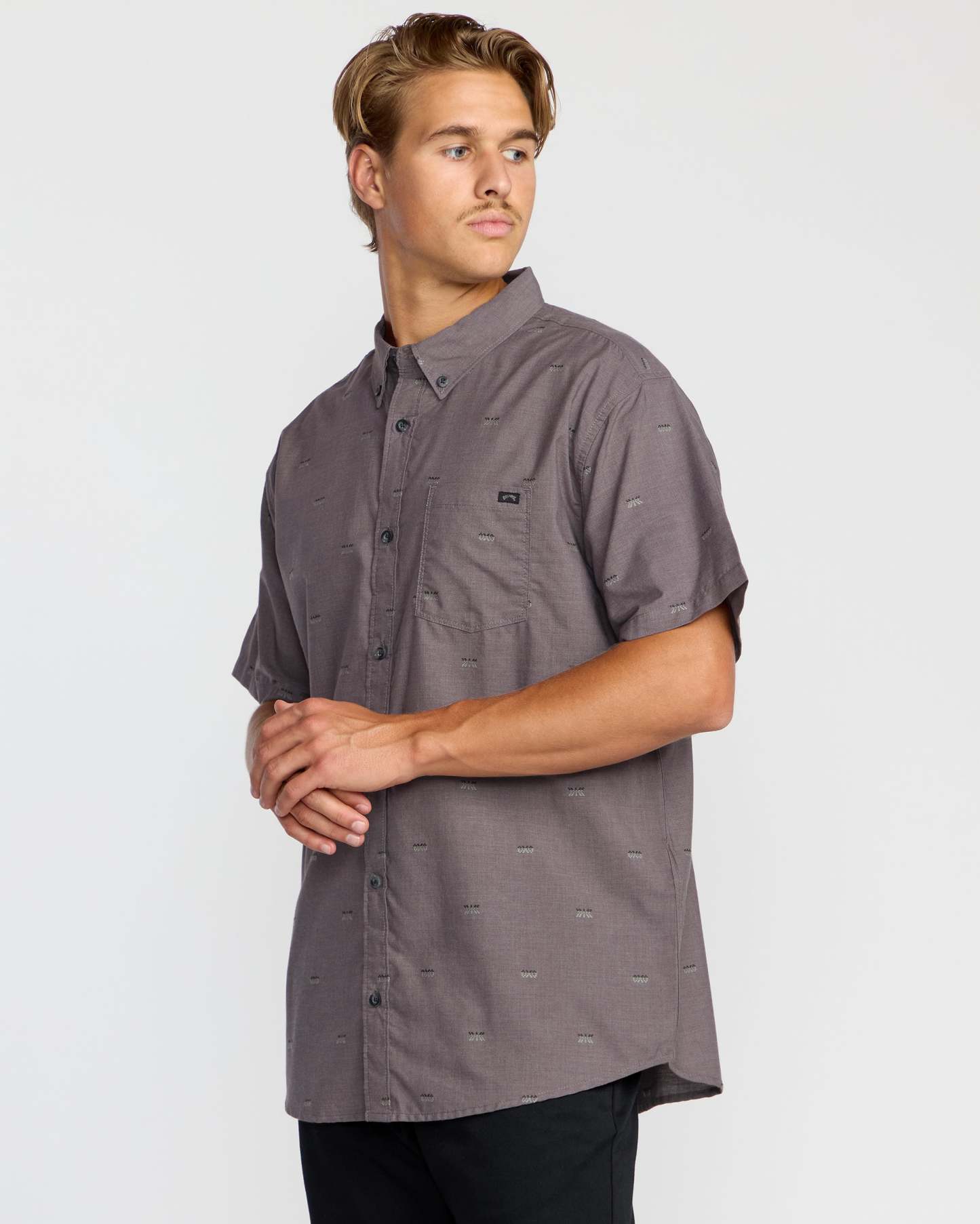For adventures that stretch from dawn to dusk, the All Day Jacquard Short Sleeve Shirt weaves a regular fit from premium cotton and partially recycled polyester. Garment-washed for unrivaled comfort, it's styled with a button-down collar and branded pocket for timeless versatility. Featured here in the Gray Violet colorway.