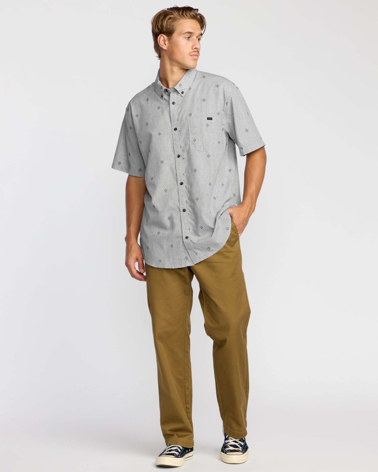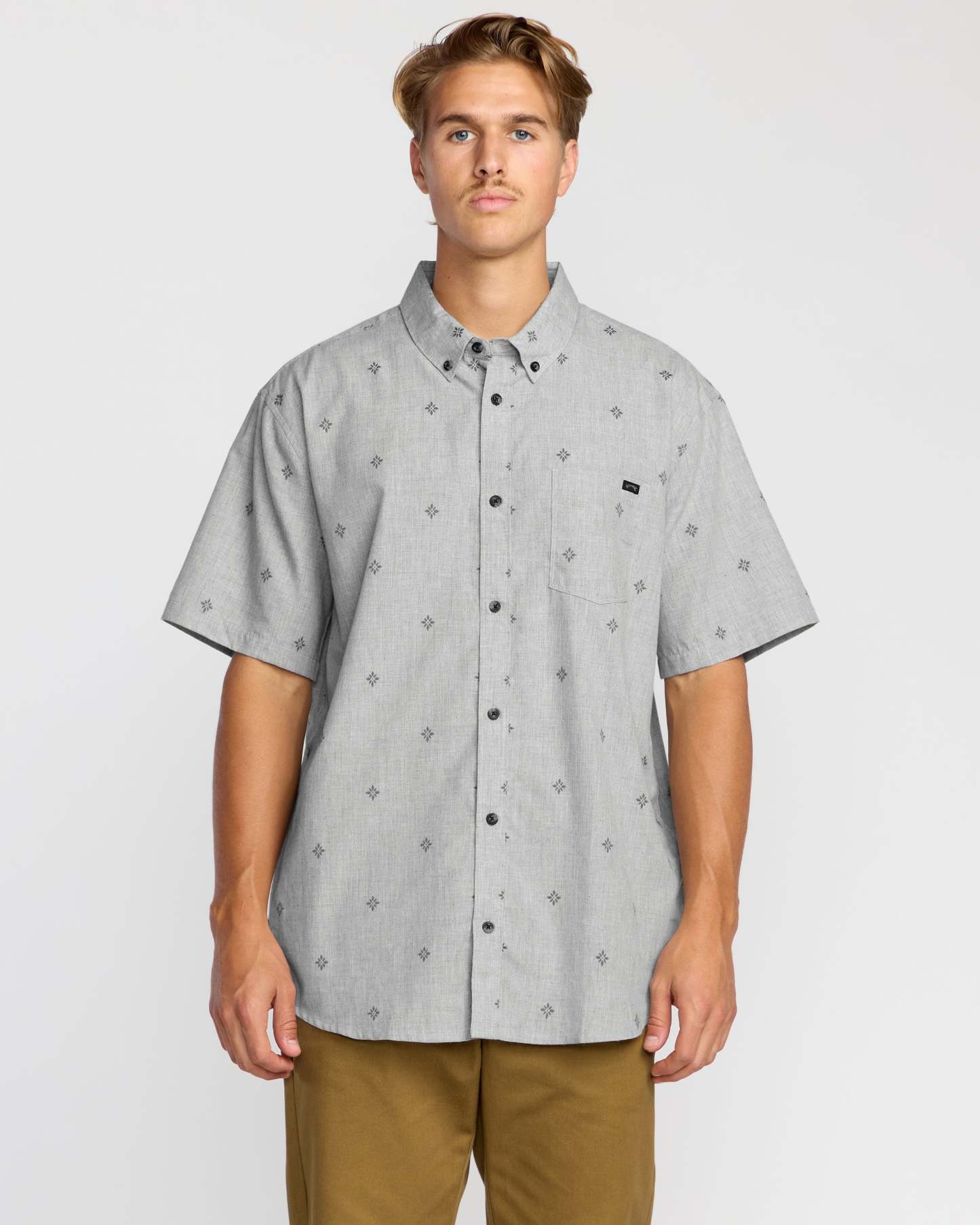 For adventures that stretch from dawn to dusk, the All Day Jacquard Short Sleeve Shirt weaves a regular fit from premium cotton and partially recycled polyester. Garment-washed for unrivaled comfort, it's styled with a button-down collar and branded pocket for timeless versatility. Featured here in the Silver colorway.