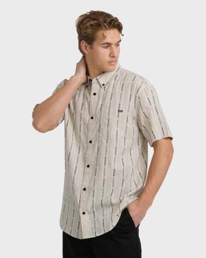 For adventures that stretch from dawn to dusk, the All Day Jacquard Short Sleeve Shirt weaves a regular fit from premium cotton and partially recycled polyester. Garment-washed for unrivaled comfort, it's styled with a button-down collar and branded pocket for timeless versatility. Featured here in the Stone colorway.