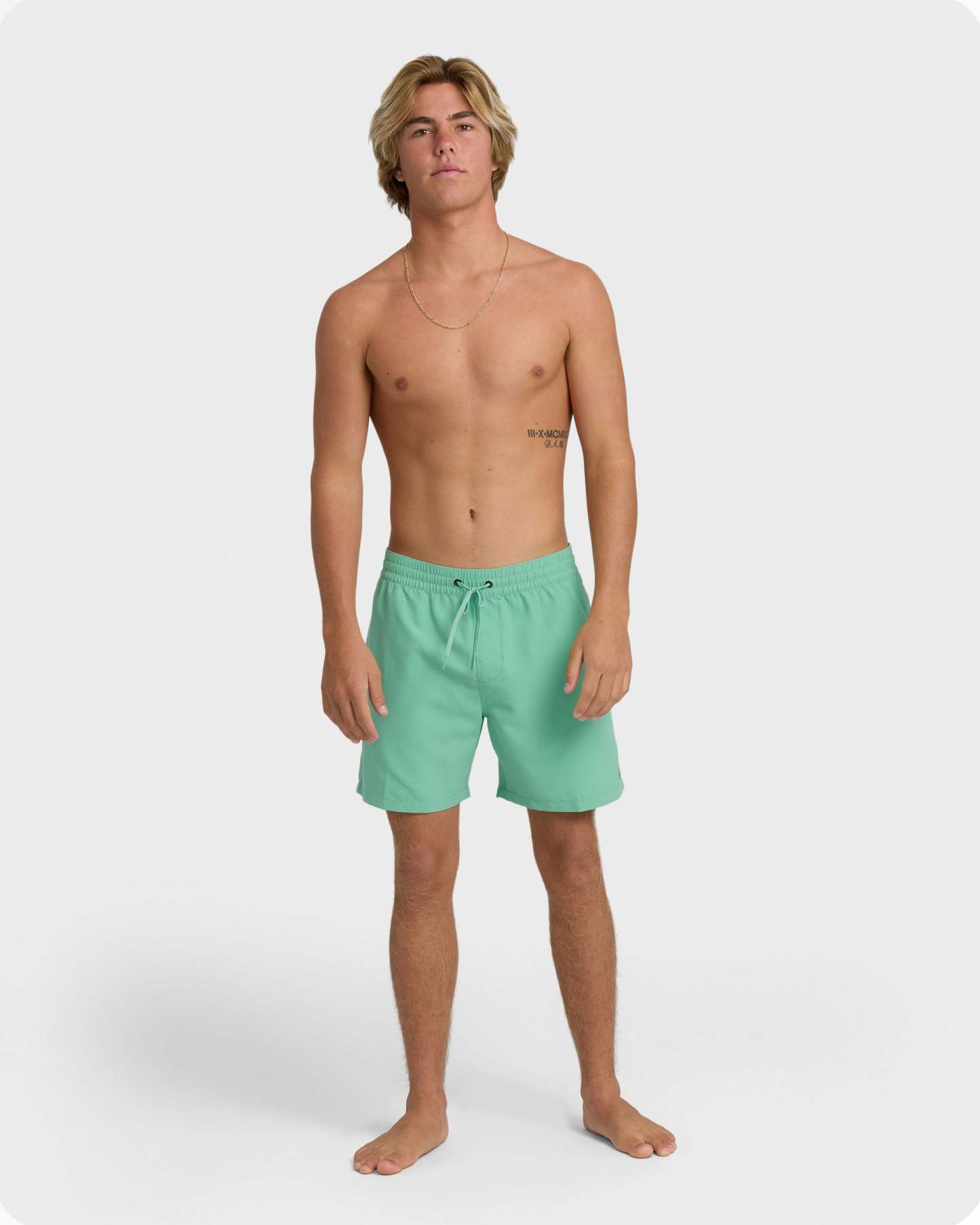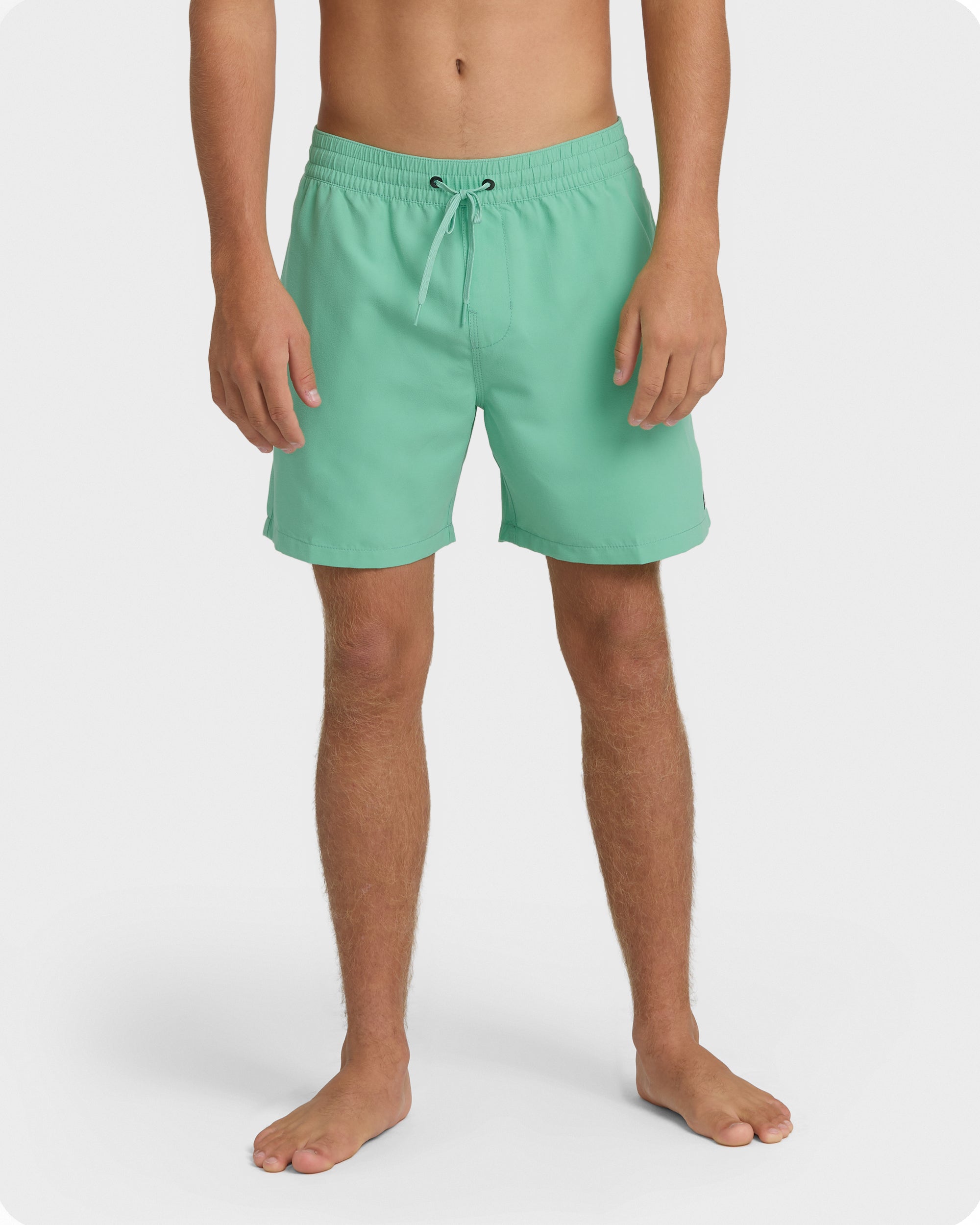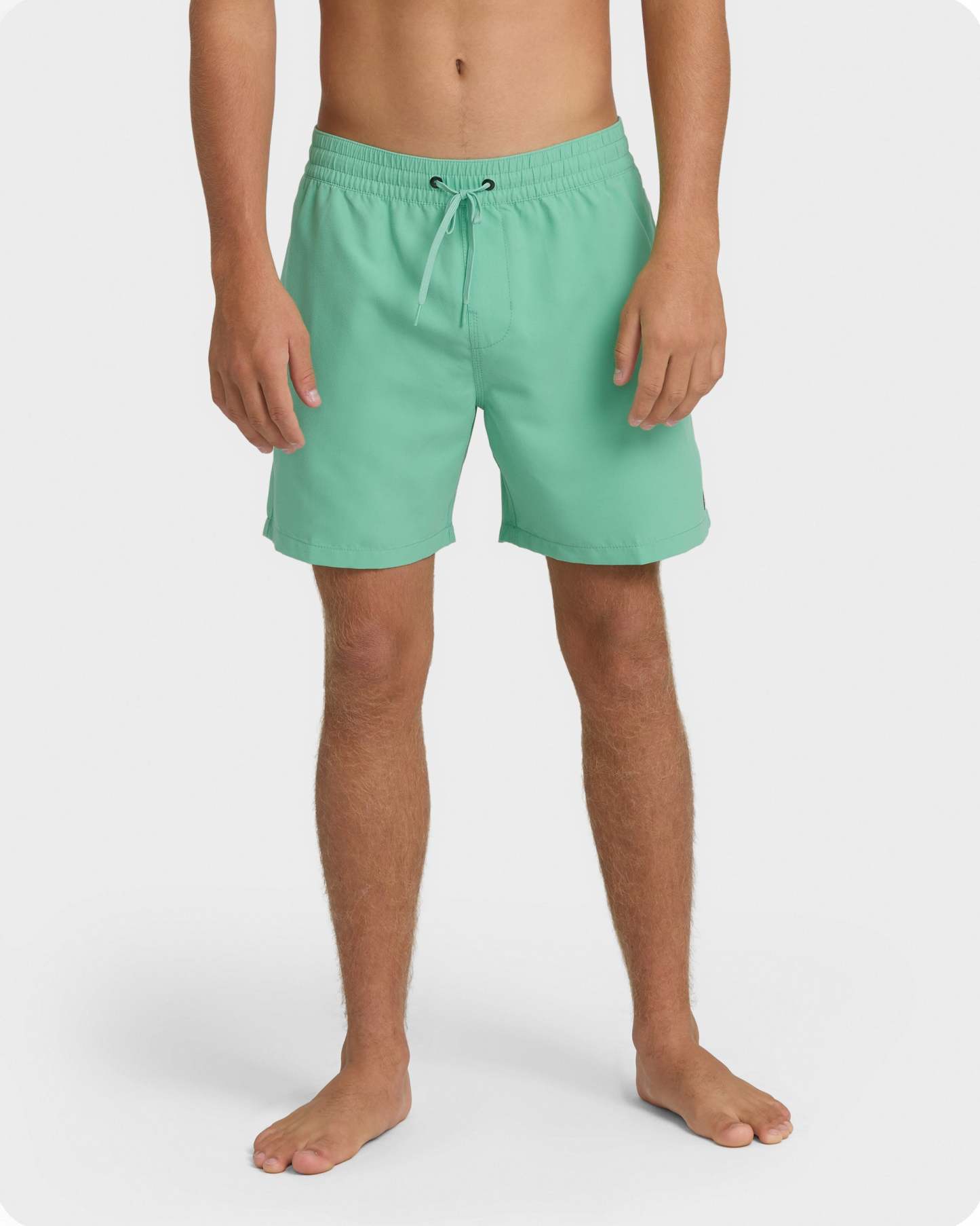 Update your boardie collection with our All Day Layback Trunks in a new range of vibrant colors. Designed to be worn everywhere — from beach to streets to surf — these solid men's trunks are your everyday go-tos with an elastic waist, 16" outseam, and handy front pockets. Crafted from partially recycled materials for fast-drying comfort and ample stretch. Seen here in Lime Green.