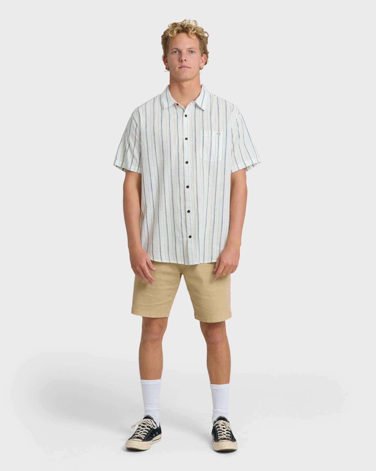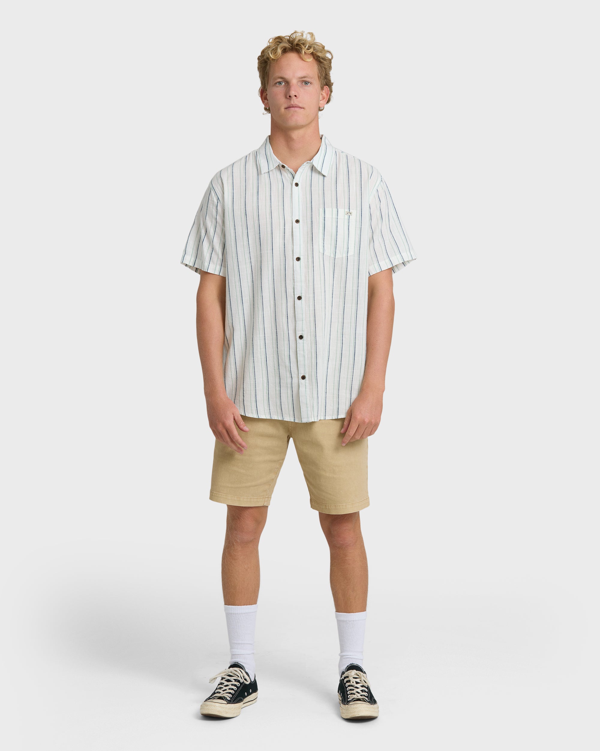 Timeless style meets breezy comfort in our All Day Stripe Short Sleeve Shirt. This regular fit woven shirt features clean lines, breathable 100% cotton fabric, and a handy chest pocket for that touch of everyday functionality. Perfect for sunny weekends or casual Fridays at the office.