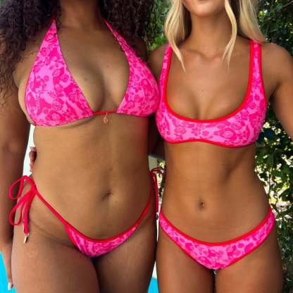 Fits true to size with minimal, daring coverage and light cup support, best suited for smaller cup sizes. Note: Sizing up in this style will not increase coverage, as this style is designed for a slim fit.