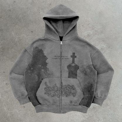 Casual Street Print Zip Hoodie