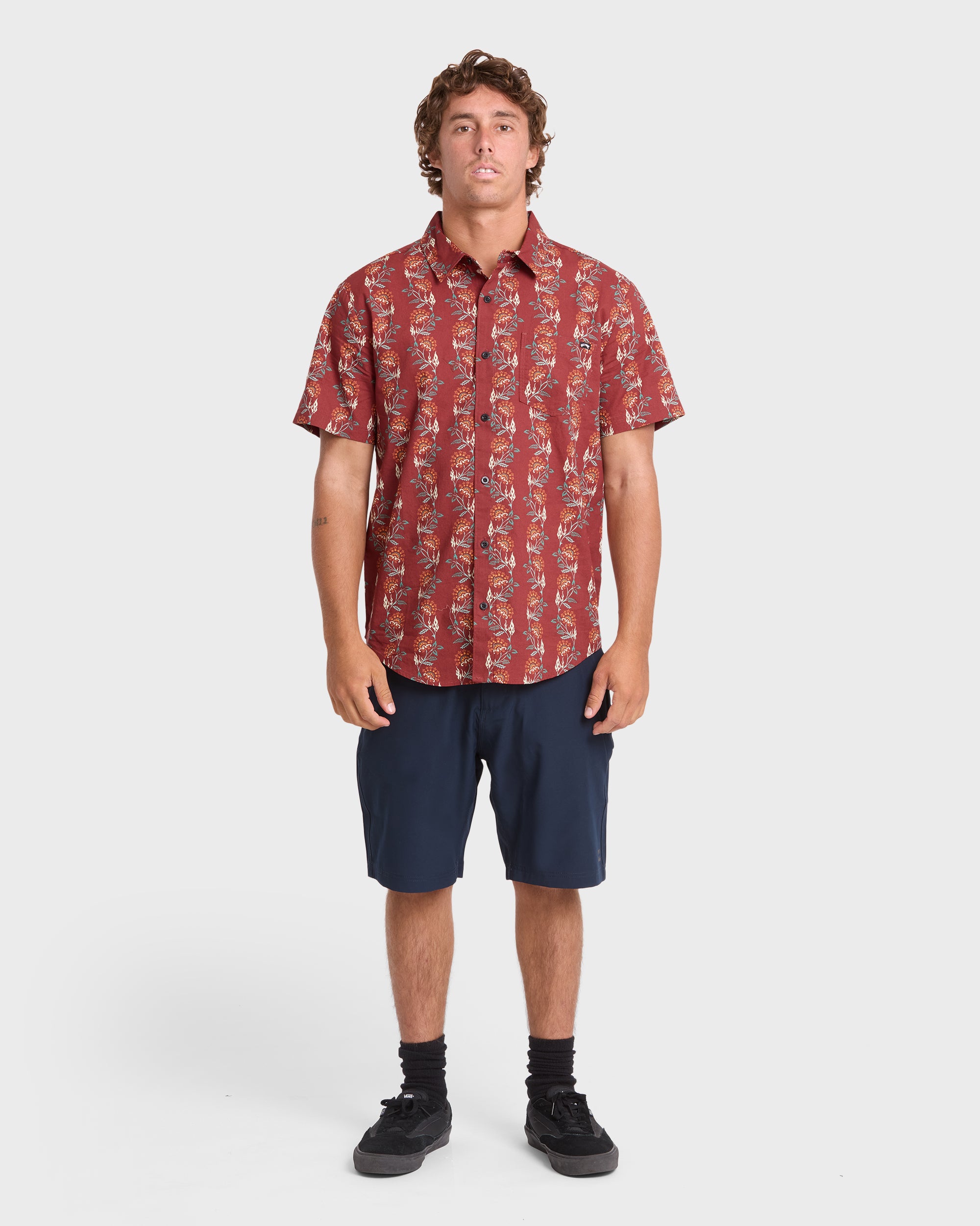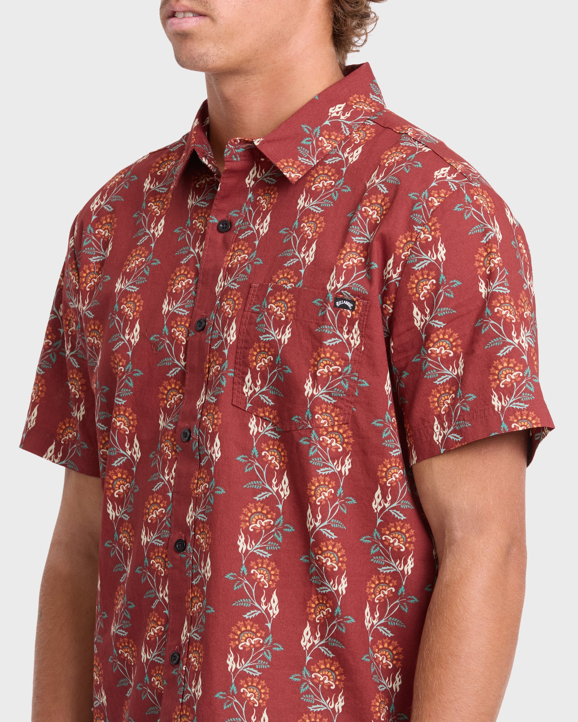 Our pure cotton short sleeve shirt brings laid-back style with its printed woven fabric and handy chest patch pocket. Classic comfort meets everyday cool in this easygoing essential for your wardrobe. Featured here in the Brick colorway.