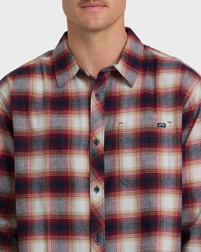 As temperatures fluctuate, our Coastline Long Sleeve Flannel Shirt keeps you cozy in soft 100% cotton. This men's shirt boasts a relaxed regular fit, chest pocket and unique scalloped hem for laid-back style with an eye-catching twist. Featured here in the Plum colorway.