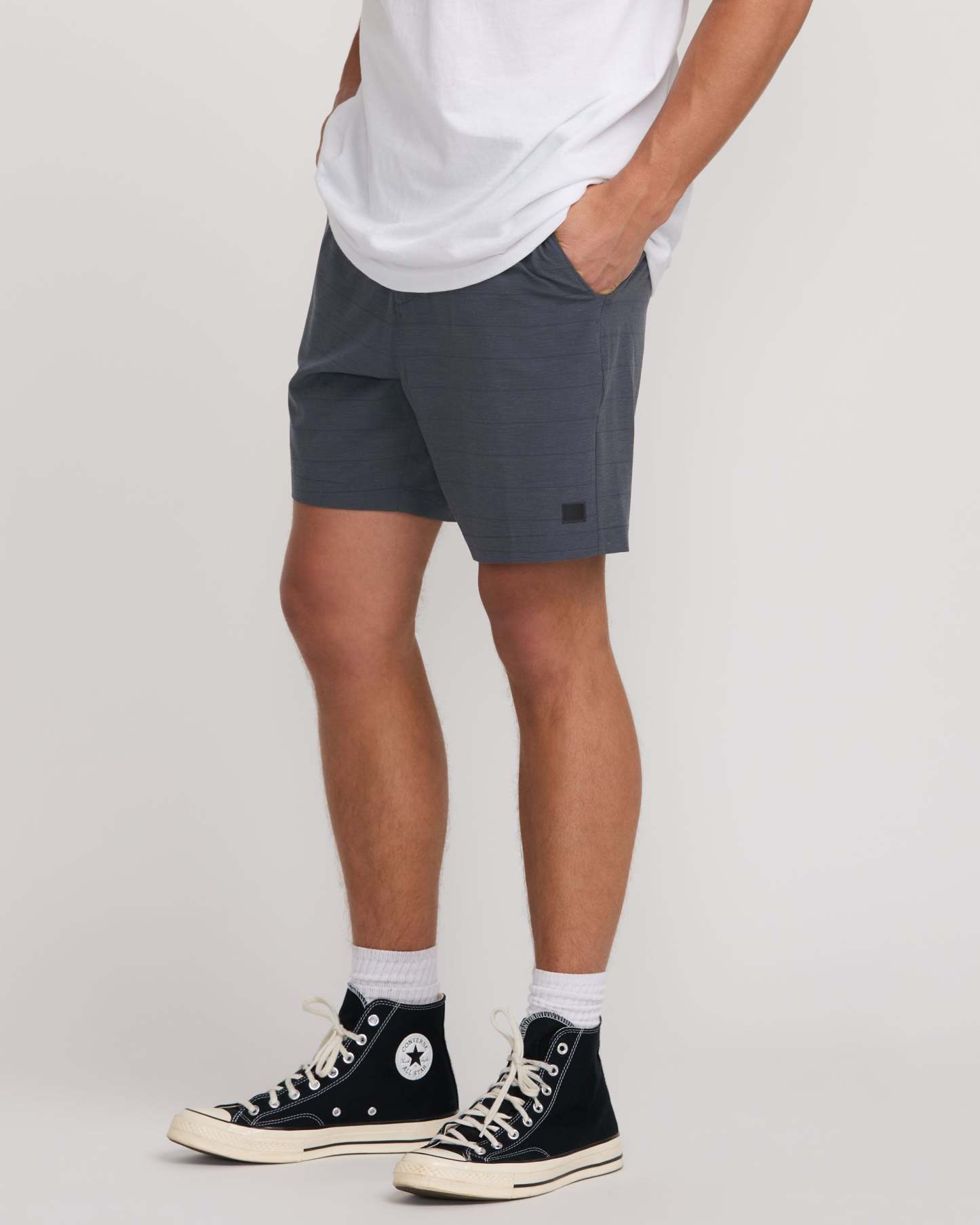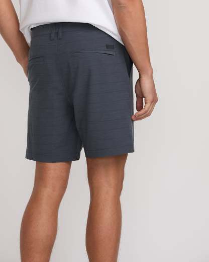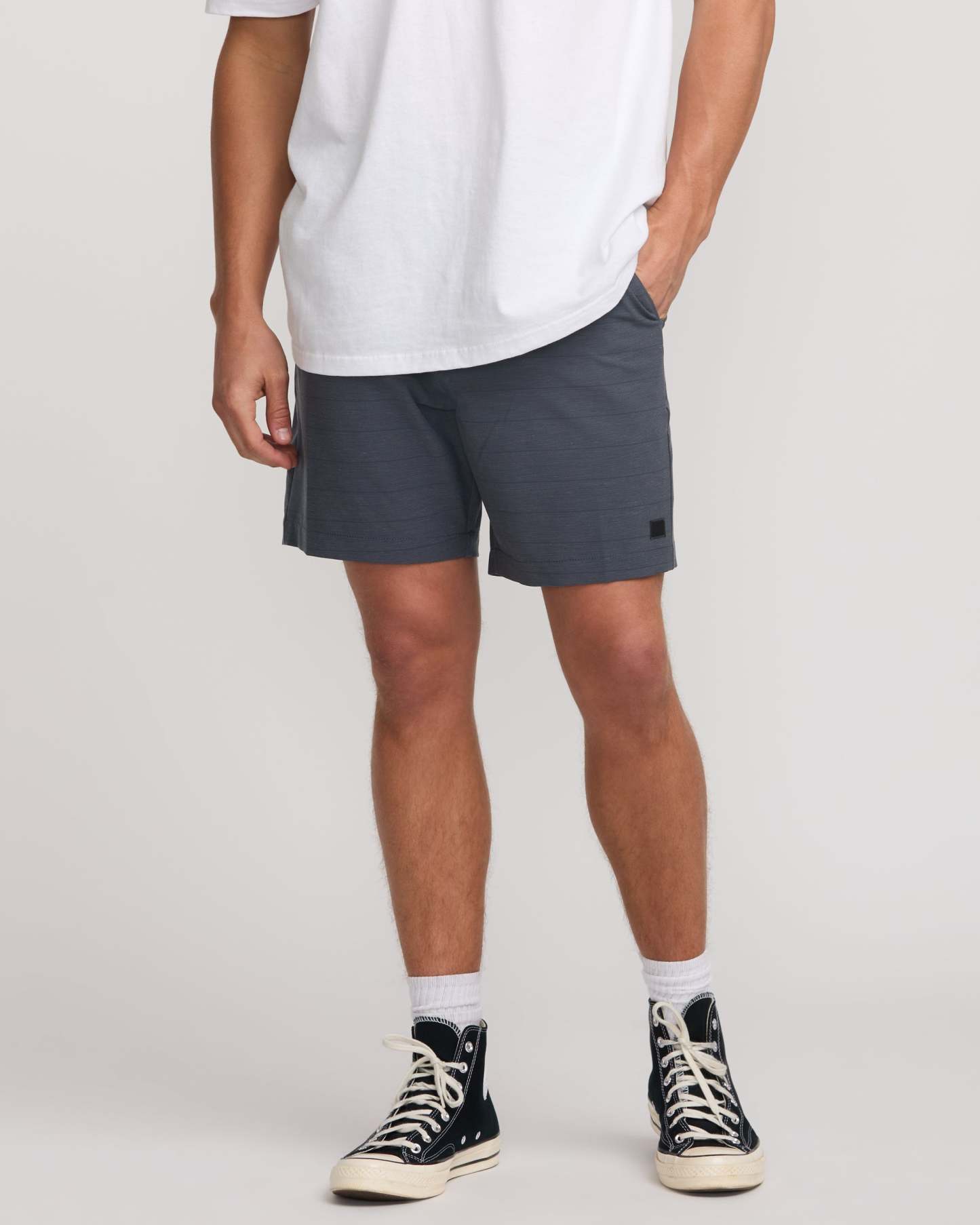 Our Billabong quick-dry, 4-way stretch hybrid shorts fit in everywhere. Featuring a relaxed, straight fit with a 17" length, the Crossfire 17 Submersible Hybrids sport structured chino styling complete with button closure and pockets. From paddling to grilling, these versatile shorts ensure comfort and style. Micro repel oxford stripe quad blend fabric. Featured here in the Aged Indigo colorway.
