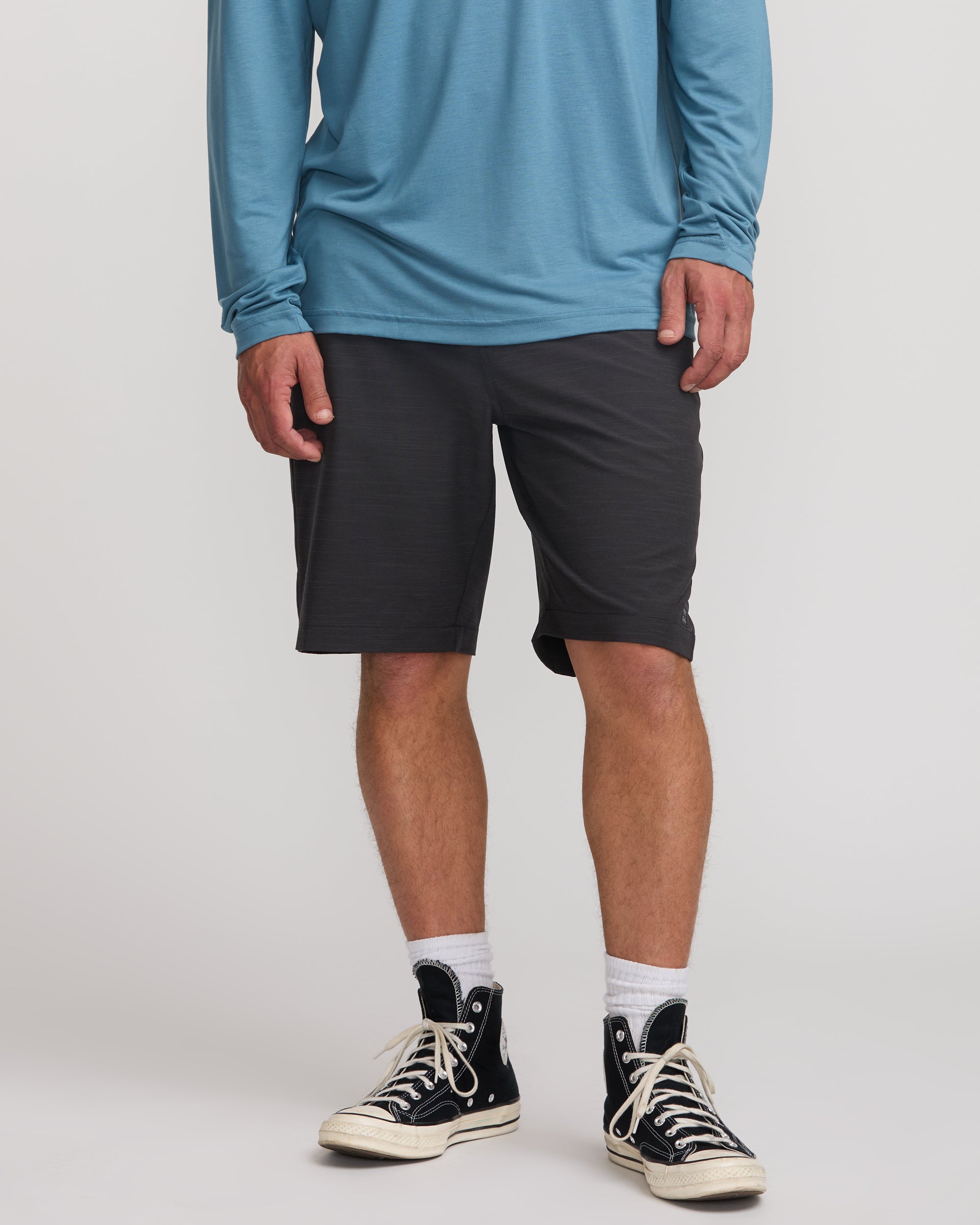 Versatile water-to-land shorts for adventure await. Crafted from quick-drying, stretchy quad blend fabric, these submersible Billabong hybrids feature a relaxed chino fit with functional pockets. Slub stripe oxford styling meets athletic performance for the ultimate seaside-to-street crossover.