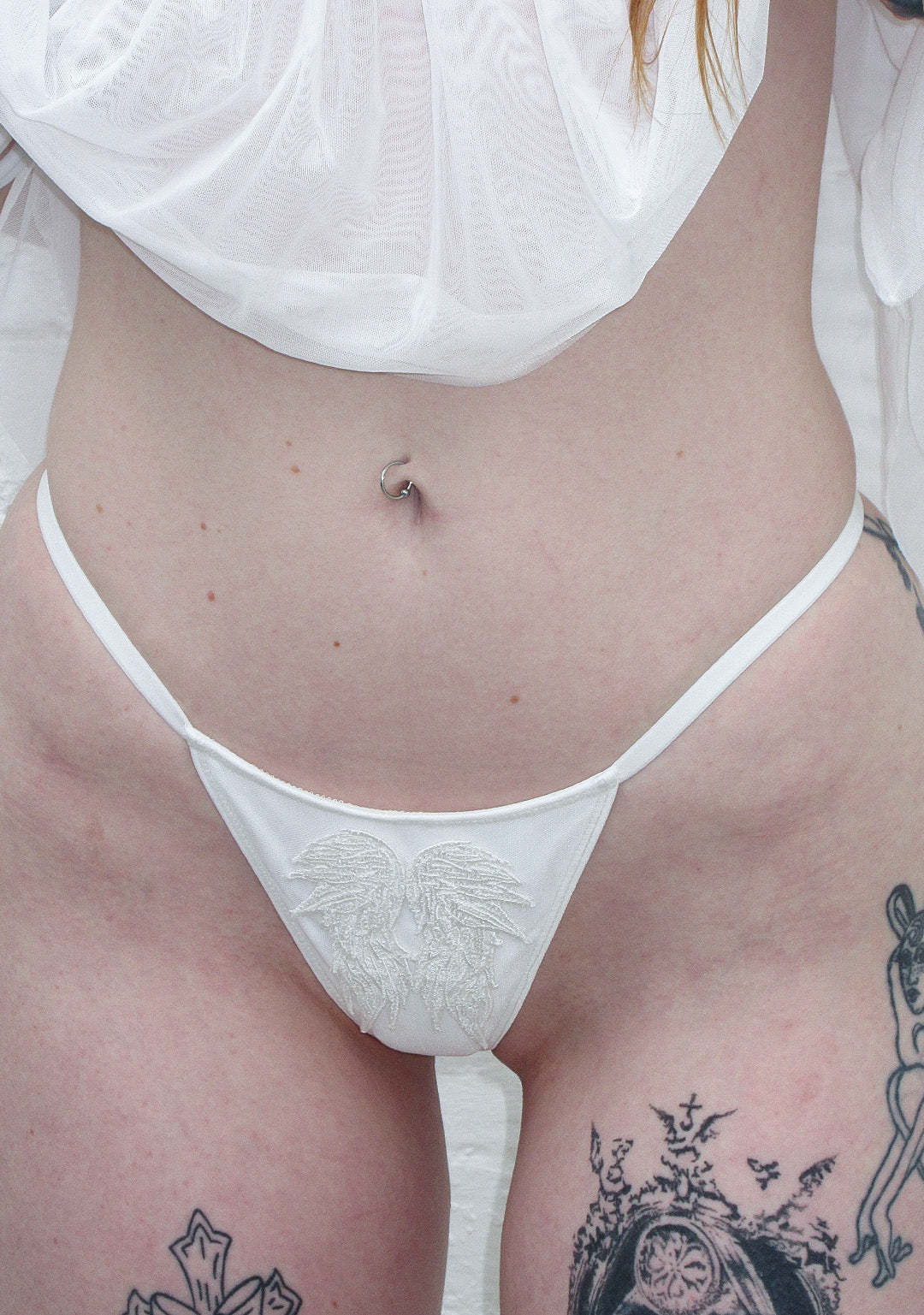 FALLEN WINGS CHARM MESH G-STRING WHITE