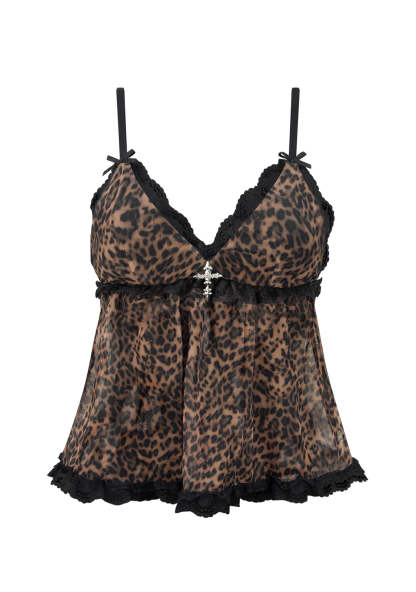 FERAL SHEER MESH CAMI TOP LEOPARD