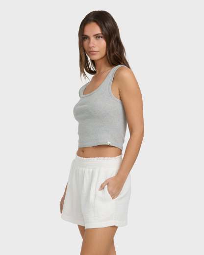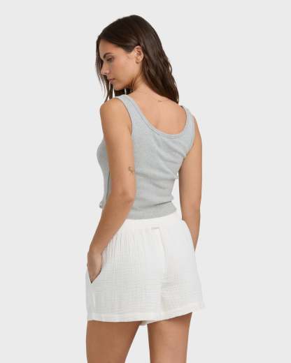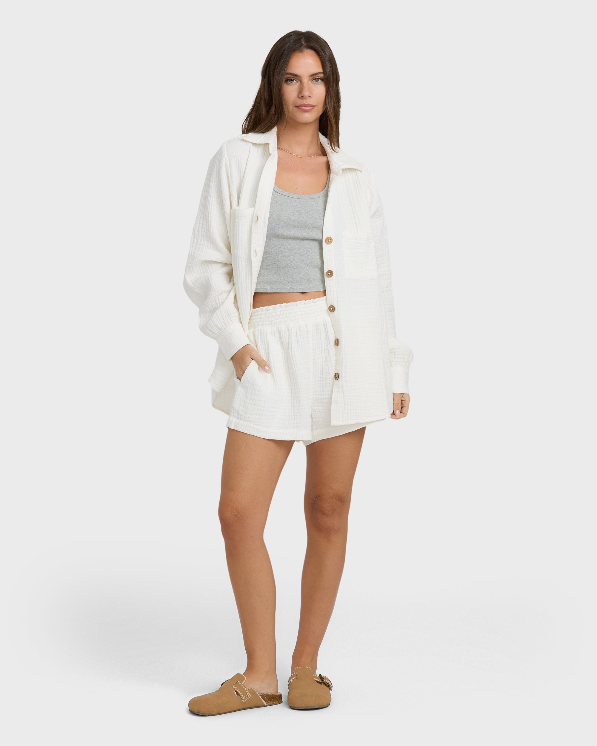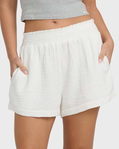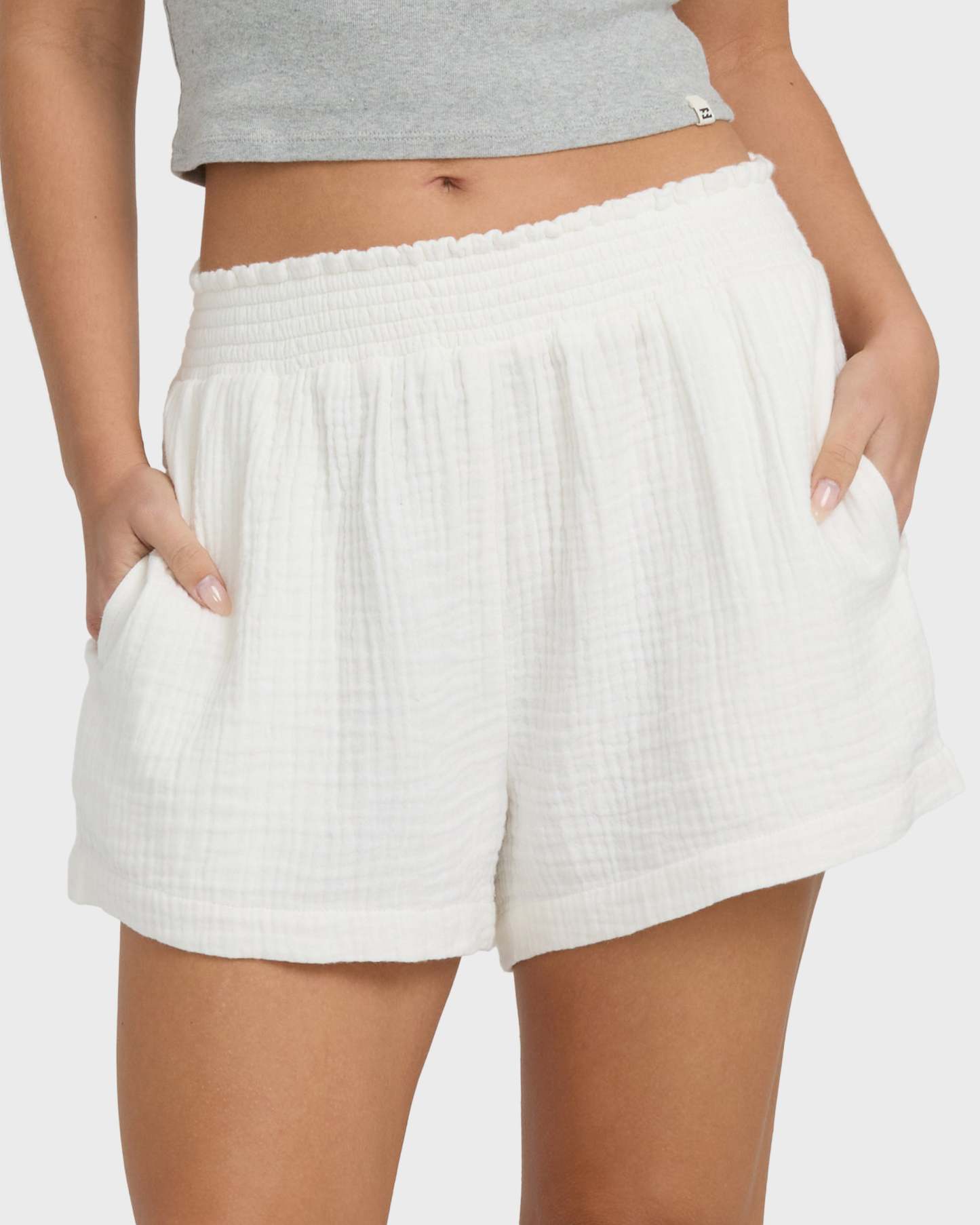 Effortless breezy style. These 100% cotton double gauze shorts keep you cool with lightweight breathable fabric. Elastic smocked waistband and relaxed regular fit provide casual all-day comfort. Side pockets stash small essentials. Featured here in the Salt Crystal colorway.