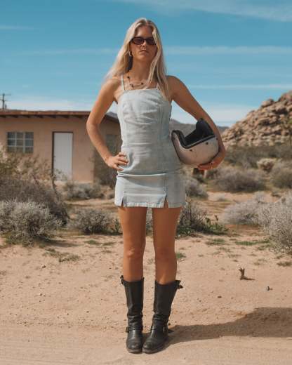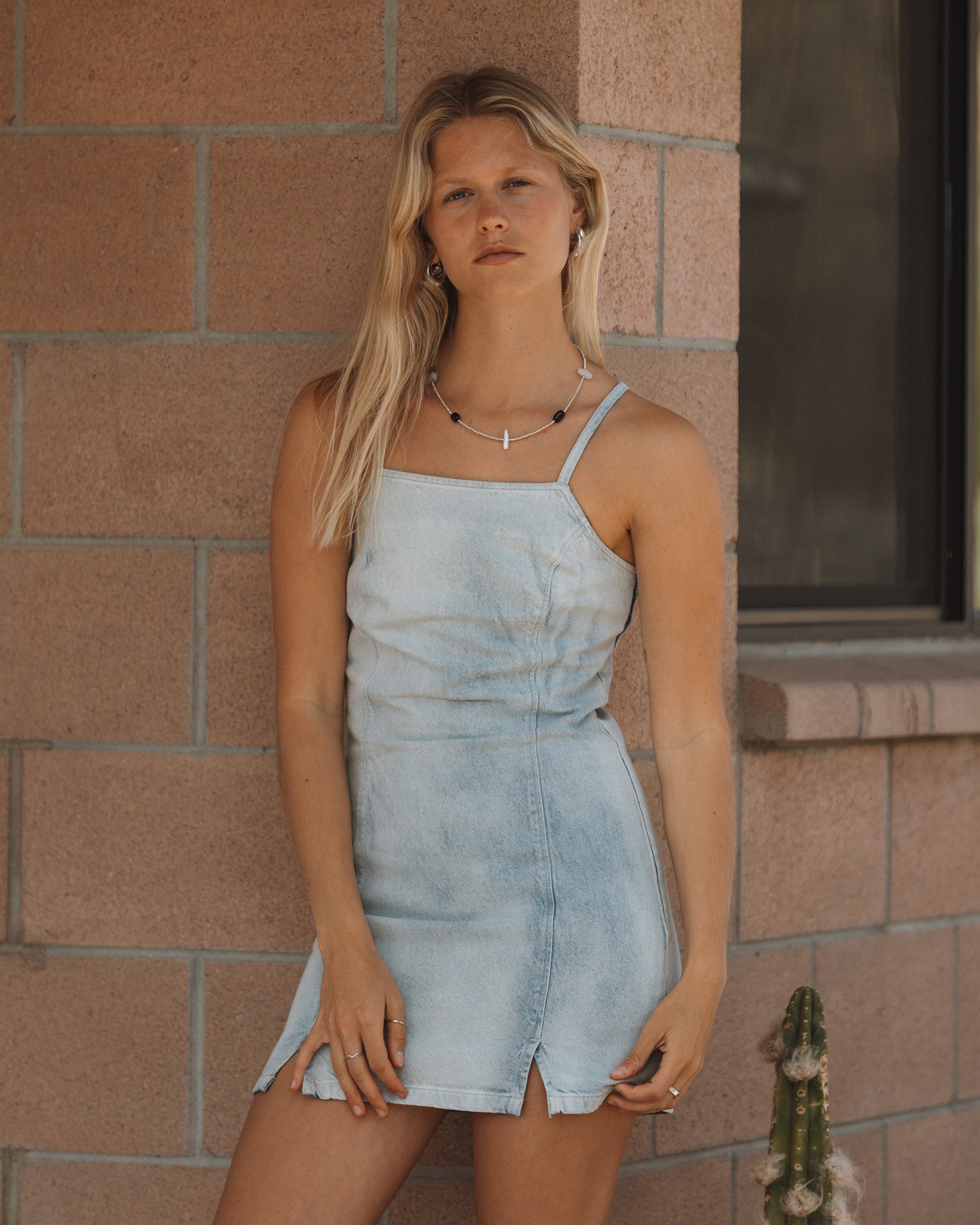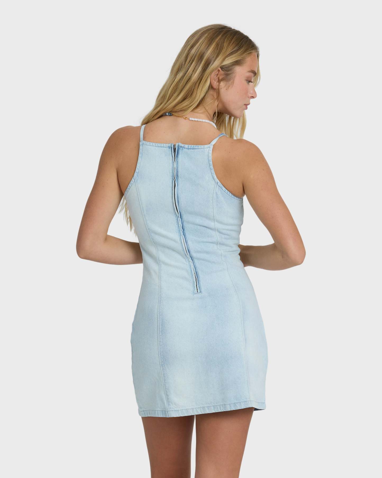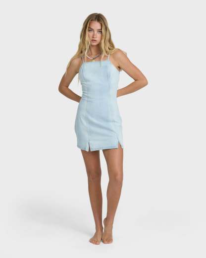 Our Jade Saltwashed Denim Dress redefines classic denim with a sunkissed feel. Crafted from pure cotton, this spaghetti-strap dress features sculpting princess seams and a flattering fitted silhouette. The mini length keeps it playful, while a sleek metal back zip and perfectly faded salt-wash finish add effortless charm.Part of the Billabong Essentials Collection — sun-washed, surf-inspired staples made for effortless everyday wear.