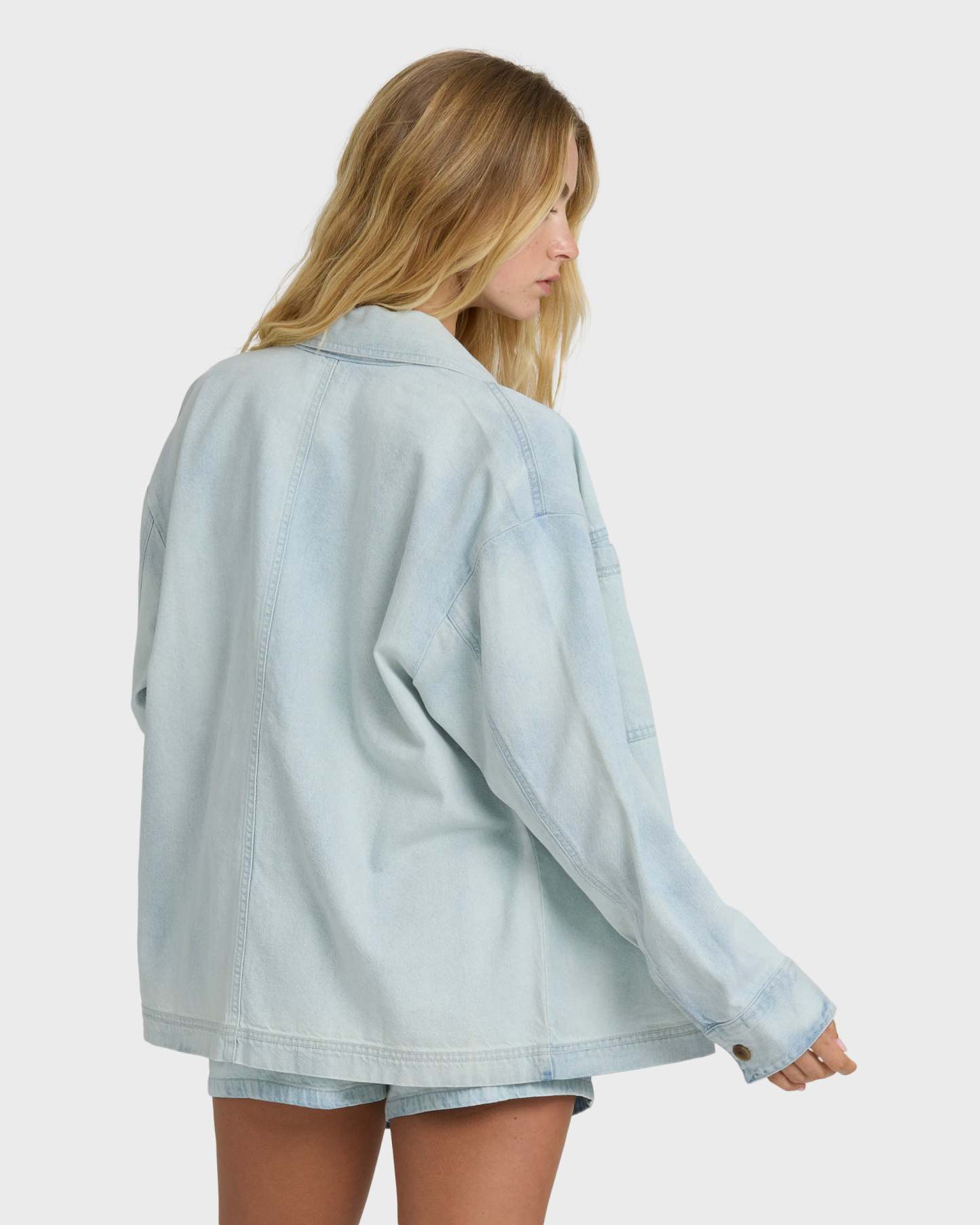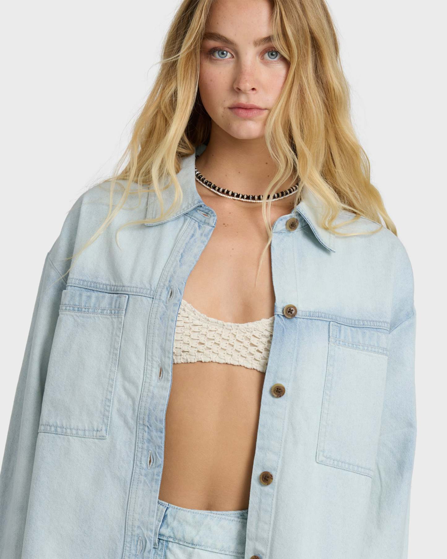 Soft yet structured— our Jade Saltwashed Long Sleeve Woven Top is the layer you'll grab every time. Crafted in cotton denim, this oversized shacket features front buttons, handy chest and on-seam pockets, and a perfect light wash that matches with everything.Part of the Billabong Essentials Collection — sun-washed, surf-inspired staples made for effortless everyday wear.