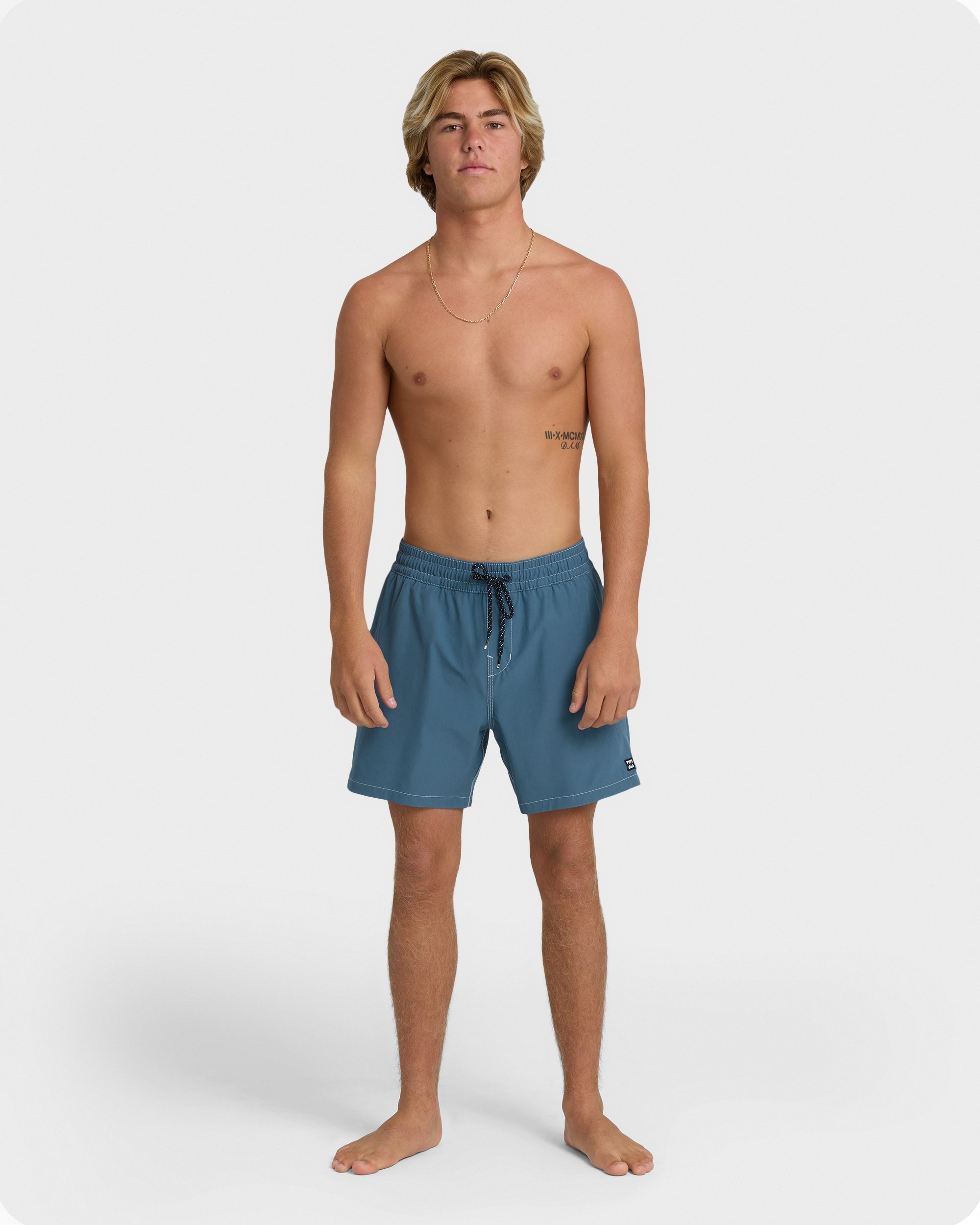 Hit the waves in our Lineup Solid Layback Trunks in Real Teal, featuring an elastic waist for all-day comfort and a practical back patch pocket for small essentials. The internal compression liner provides support while you move. These 16" outseam trunks are crafted with partially recycled polyester for style that performs.