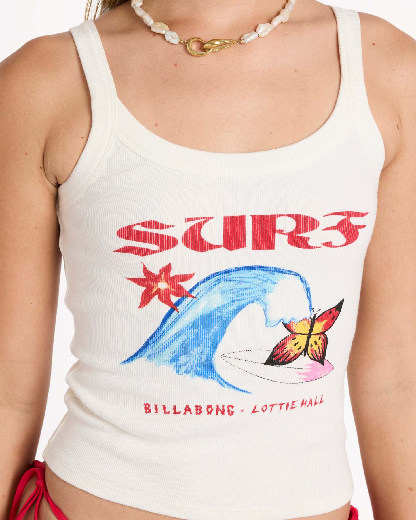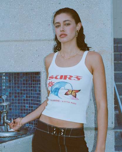 Infused with Lottie’s signature hand-drawn art and effortless coastal style, the Billabong x Lottie Hall Tank is equal parts expressive and easy to wear. Made from soft cotton-rich rib that hugs comfortably, it features a flattering scoop neckline and a front screen print that brings her playful surf-inspired energy to life. An everyday essential designed for layering over swim or styling solo in the sun.