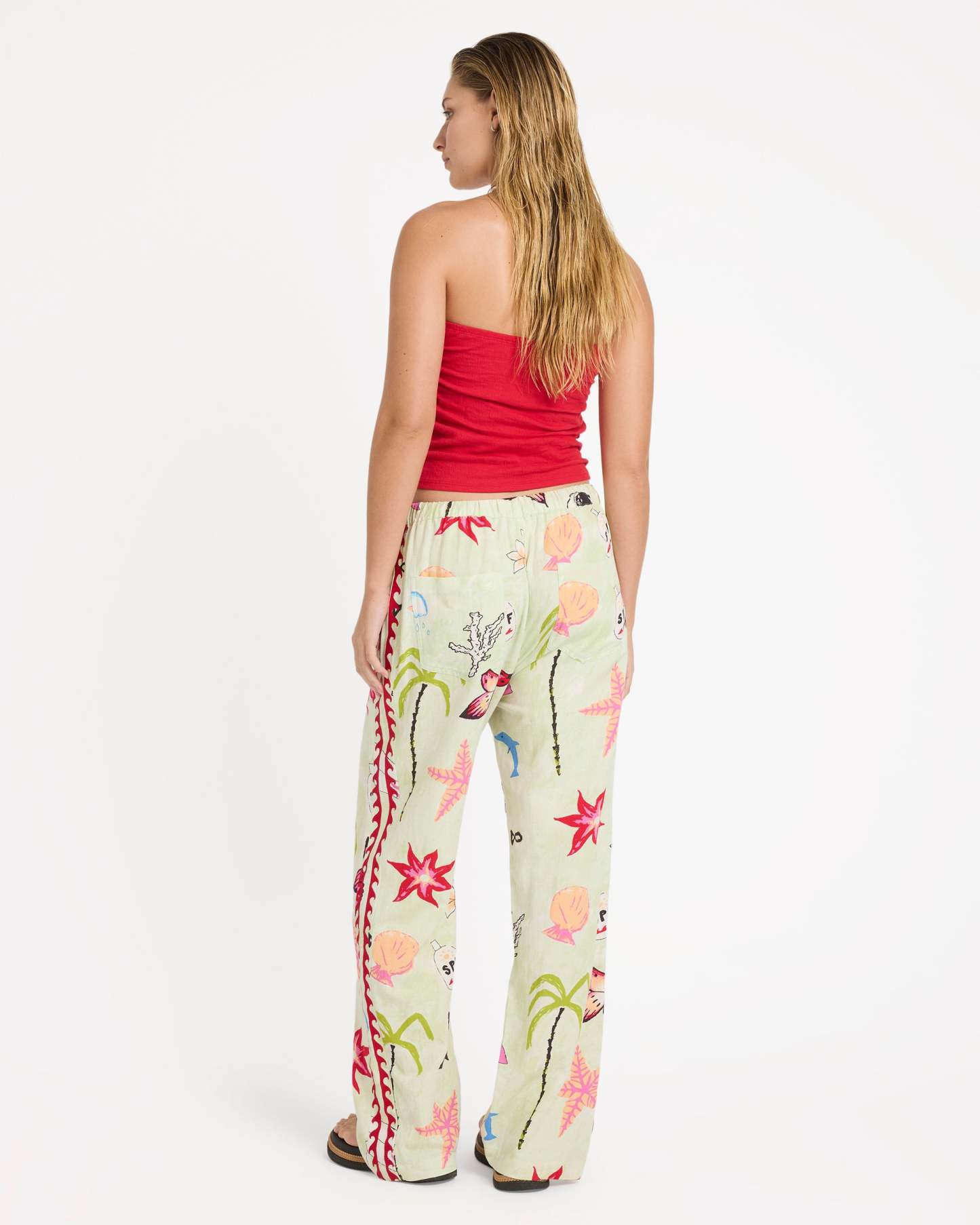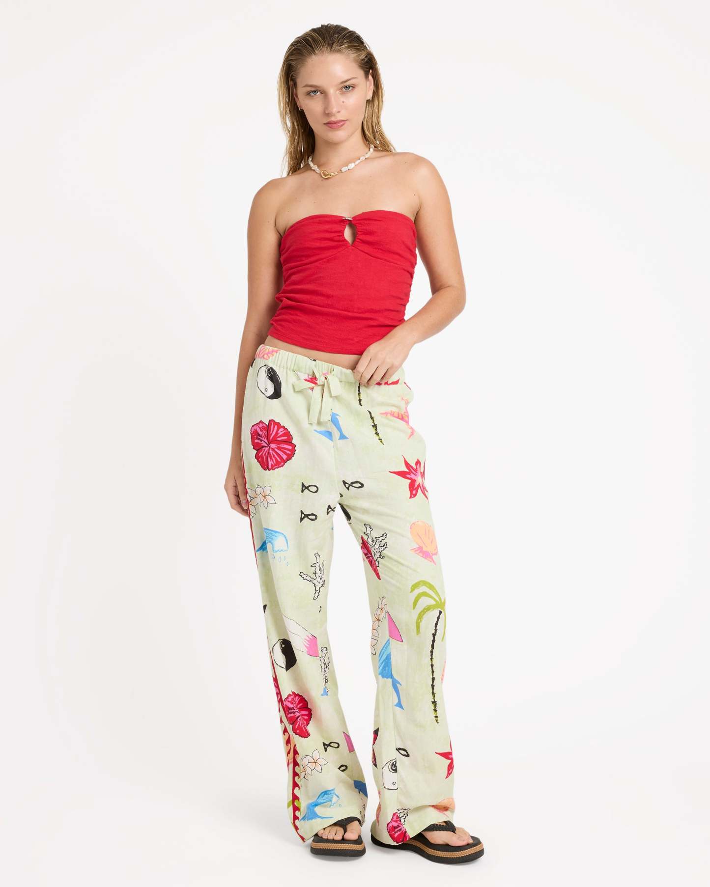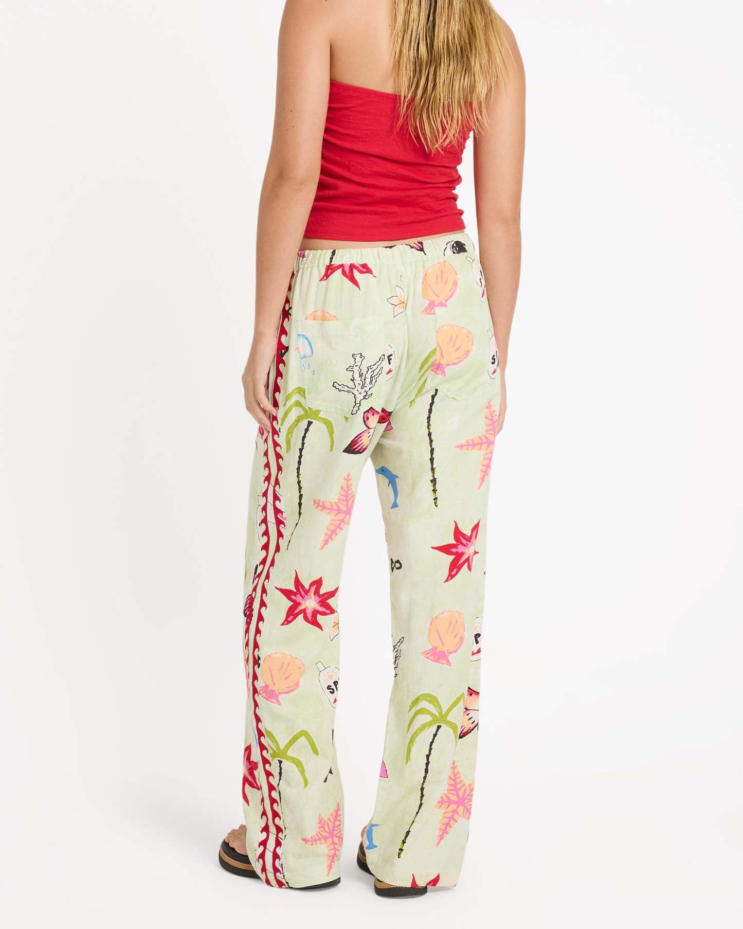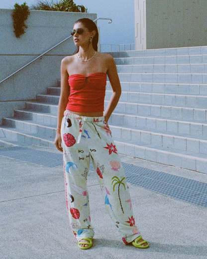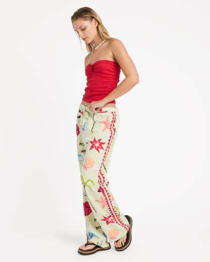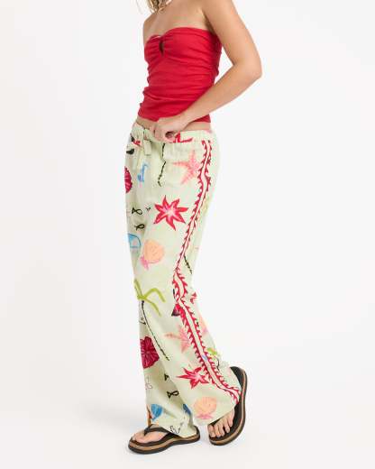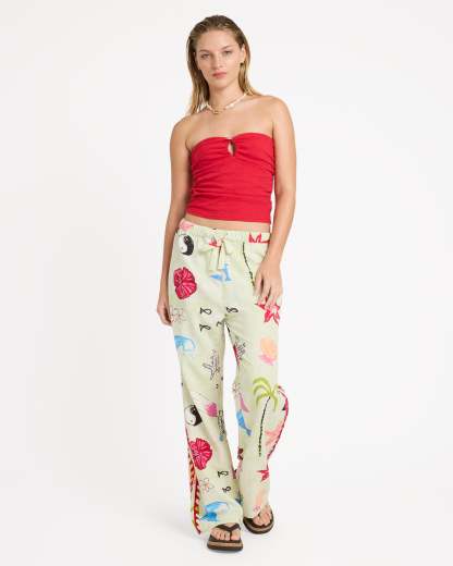 The Billabong x Lottie Hall Woven Elastic Waist Pants reflect Lottie’s laid-back, art-driven coastal aesthetic. Made from a breathable woven slub blend, they offer lightweight comfort with a relaxed yet flattering silhouette. A regular fit with a 30" inseam pairs with an elastic waistband and drawcord for adjustable ease, while subtle embroidery along the side seams adds a thoughtful, handcrafted touch.