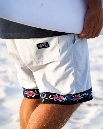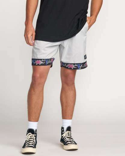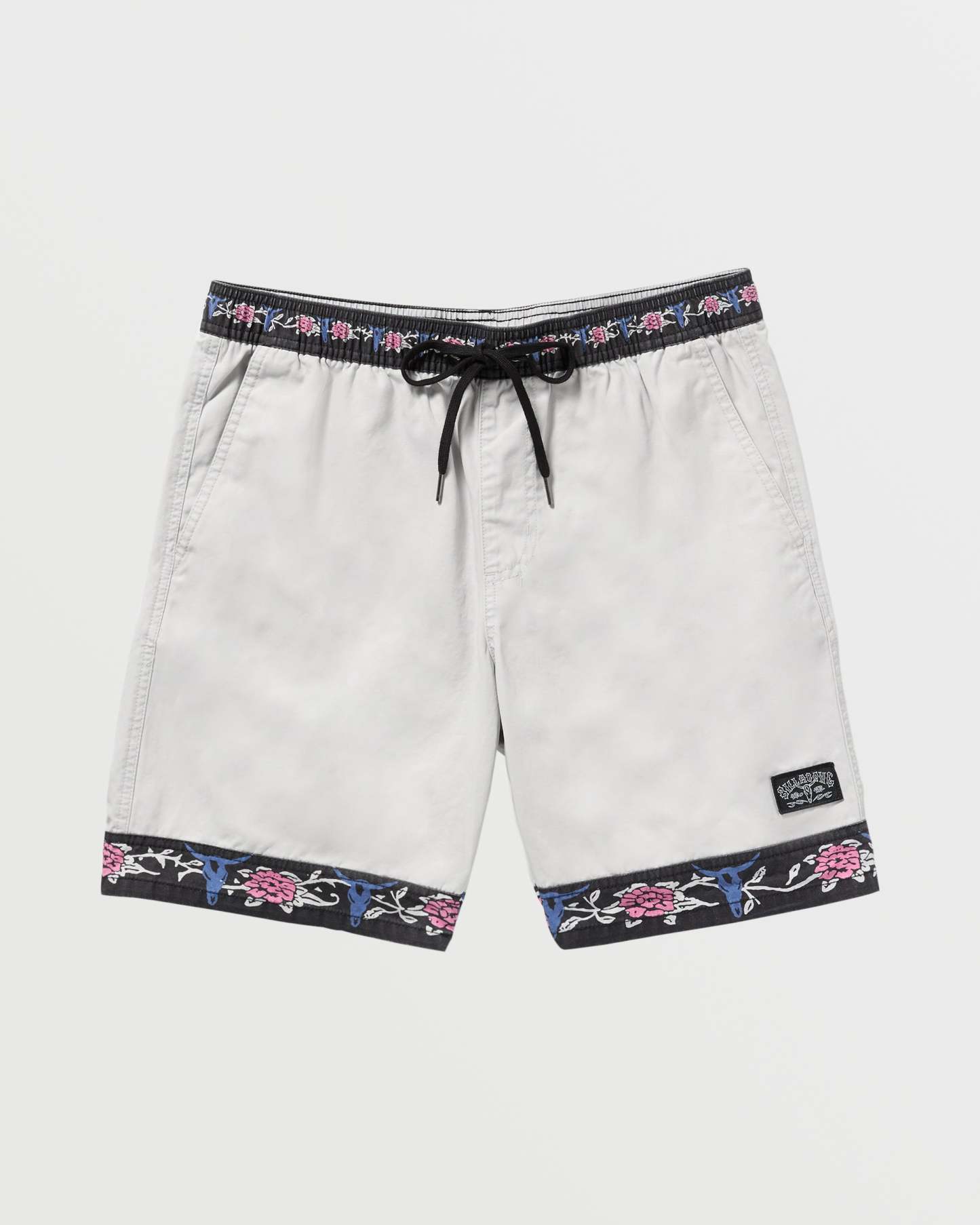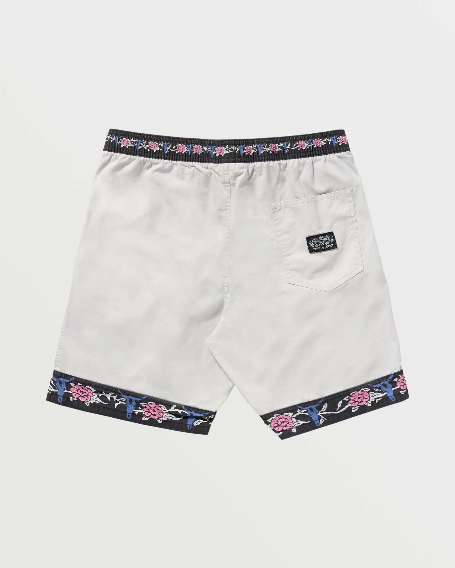 The Occy Short Larry shorts offers a unique look with surf-inspired printed hem panels, ultra-relaxed fit, with a stretch waistband, side entry pockets, back patch pockets, and an exterior drawcord. Acid washed and heavily stone washed for a vintage look.