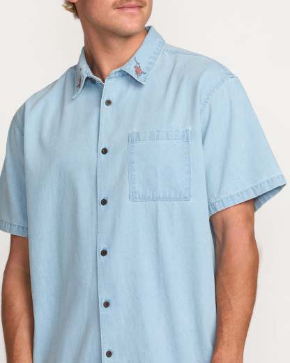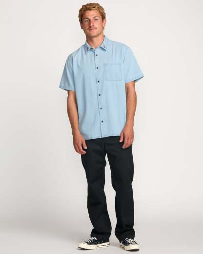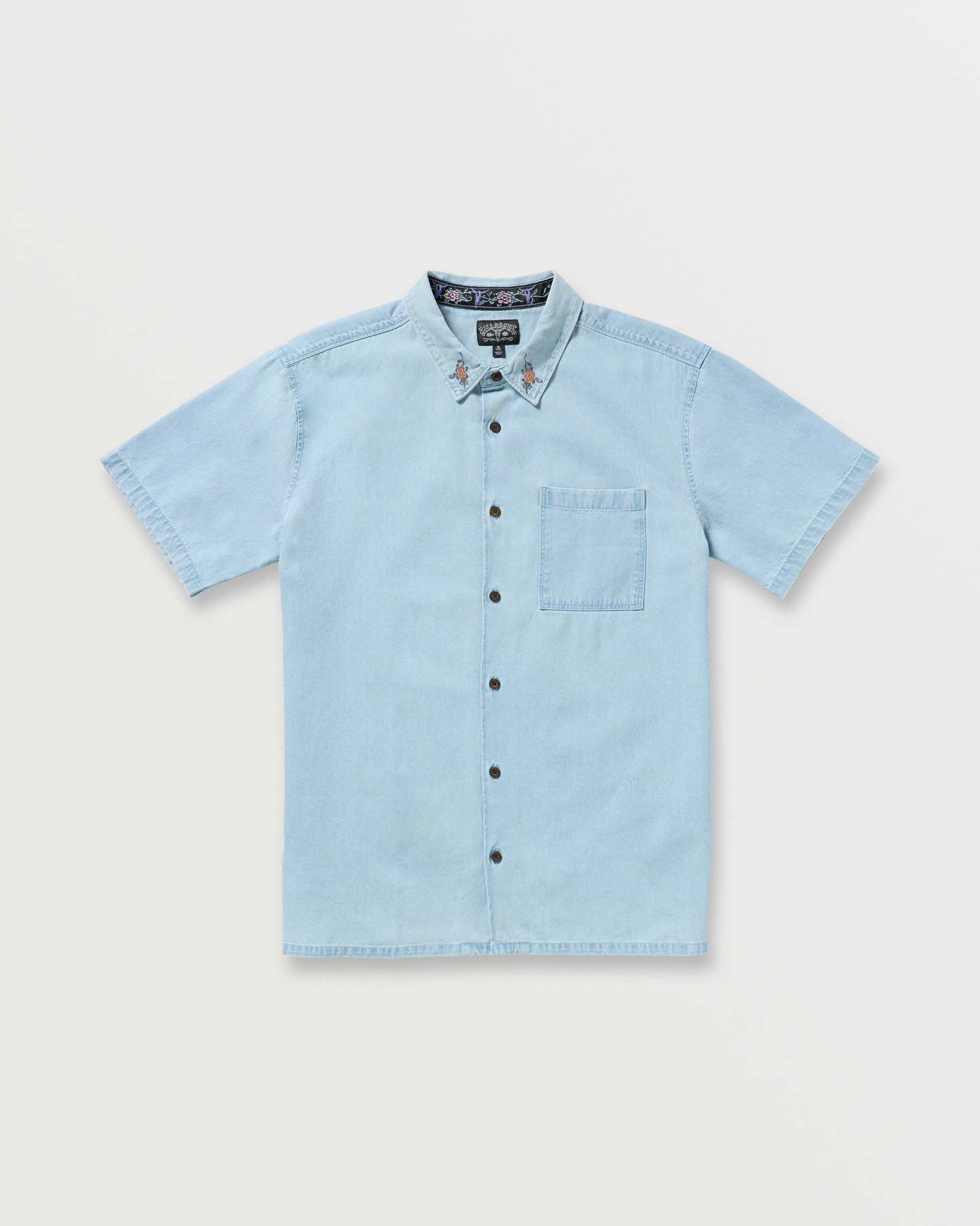 Mark 'Occy' Occhilupo is one of Billabong's most iconic surfers. Occy’s unique take—on surfing and style—is an inspiration in and out of the water, where he became known as 'The Raging Bull'. Our Occy short sleeve chambray shirt is made with 100% premium cotton. This relaxed-fit button-down features embroidered collar detailing and a single chest pocket. Garment-washed for day-one softness.