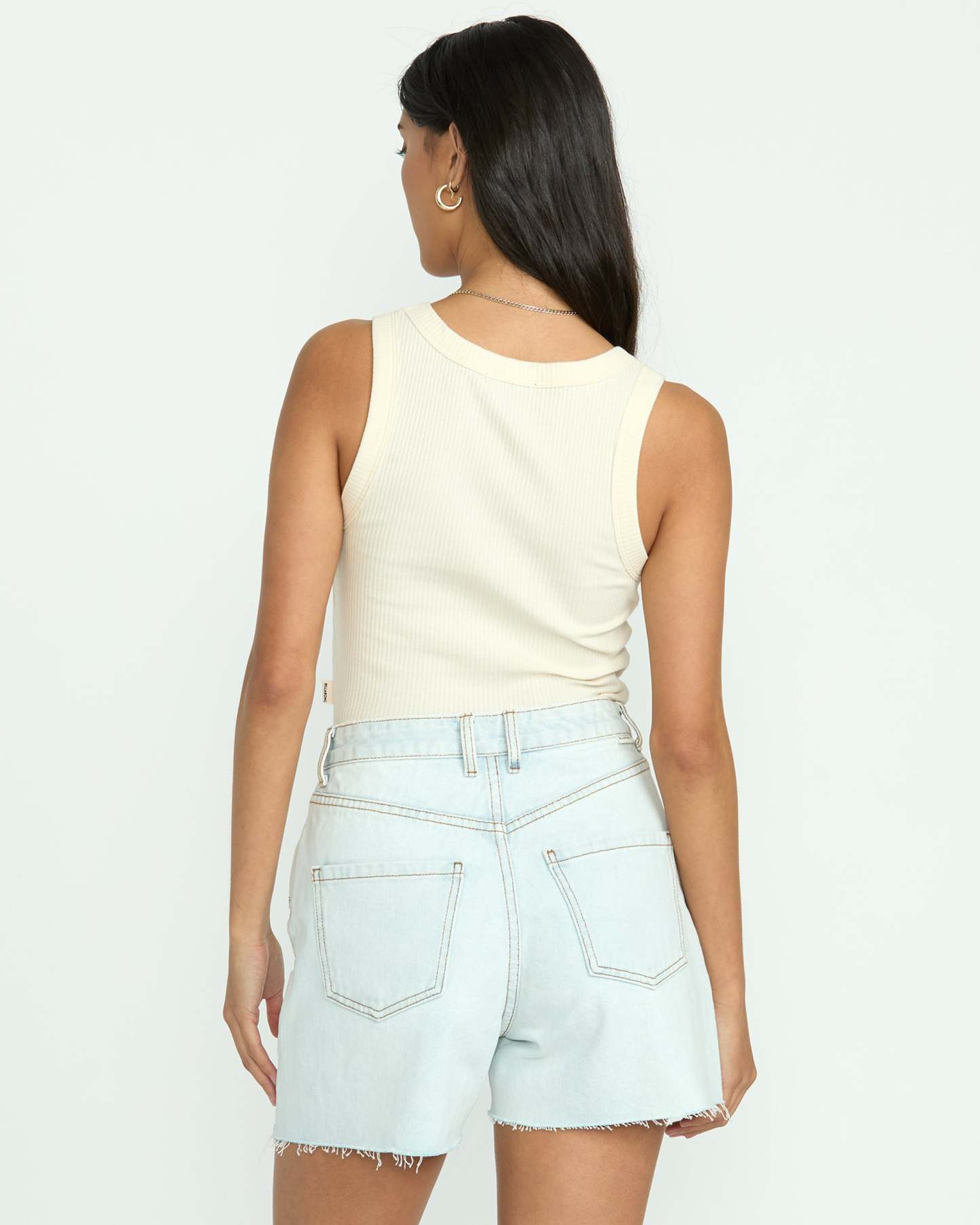 A staple that lives on year after year, this cut-off denim short just gets better with age. In classic 90s Mom jeans fashion, we've said buh-bye to the belly button and hello to the booty with a vintage-inspired high-waisted fit. The Remy Cut-Off Shorts offer a mid-thigh length, frayed hem detail, and a love-worn, broken-in finish. Featured here in the Acid Wash colorway.