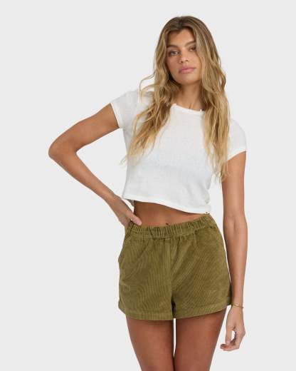 These cozy cotton corduroy shorts keep things comfy with an elastic waist and regular fit. Featuring convenient side slash pockets and a 2.5-inch inseam, they're perfect for laid-back weekend plans. Featured here in the Green colorway.