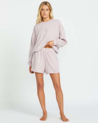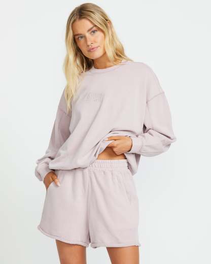 Kick back in our Billabong pigment-dyed, lived-in cotton-blend knit shorts. Relaxed with an elastic waistband, sporty side pockets, and a 3" inseam, these vintage-inspired bottoms with embroidered detailing bring laid-back summer style. Featured here in the Haze colorway.