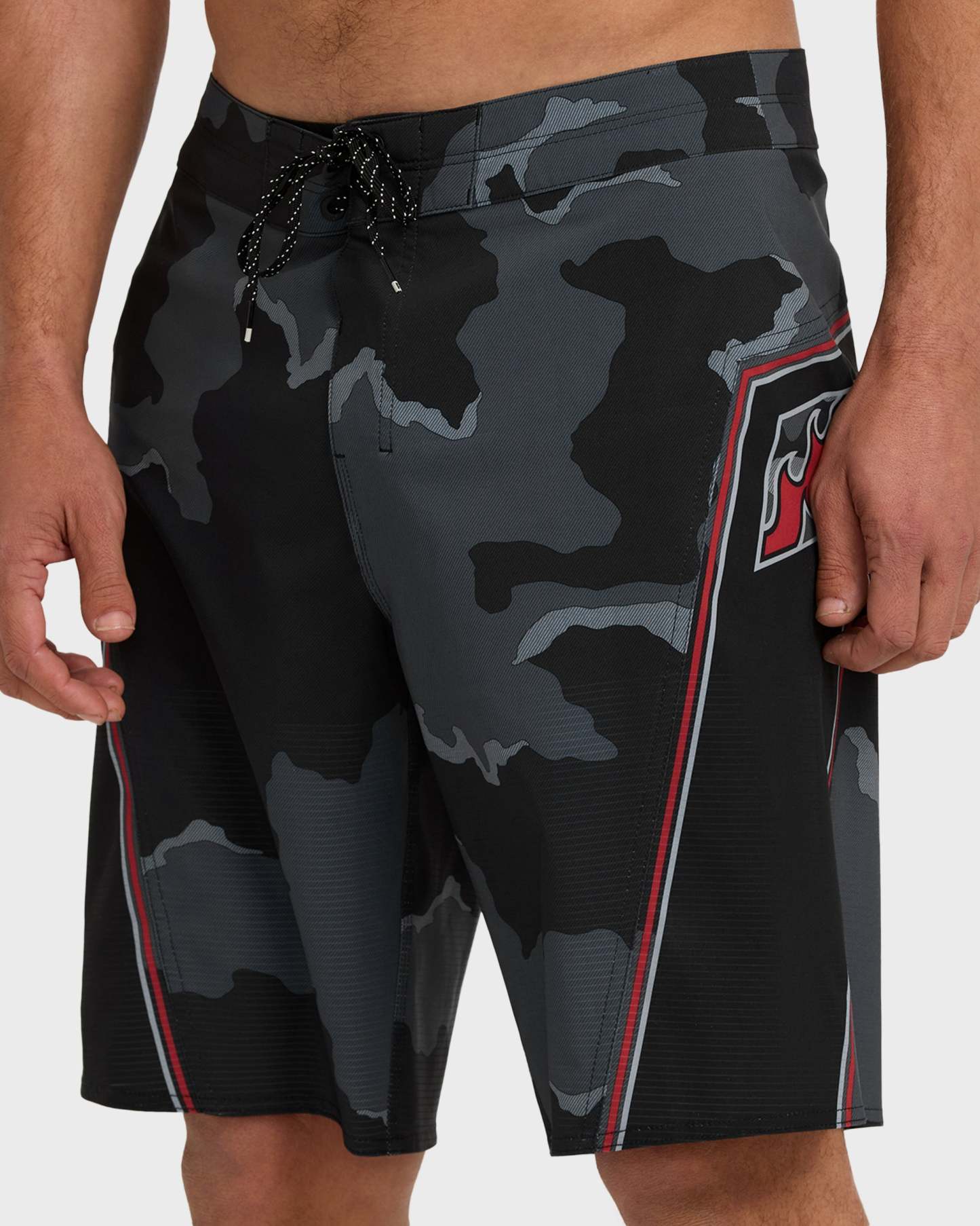 Engineered with three unique performance fabrics, these Straddie Airlite boardshorts deliver on stability, flexibility and comfort. The 20" performance fit and lightweight Airlite keeps it light, while sublimation prints and logos won't fade. Secure zip pocket holds essentials. Featured here in the Black Camo colorway.