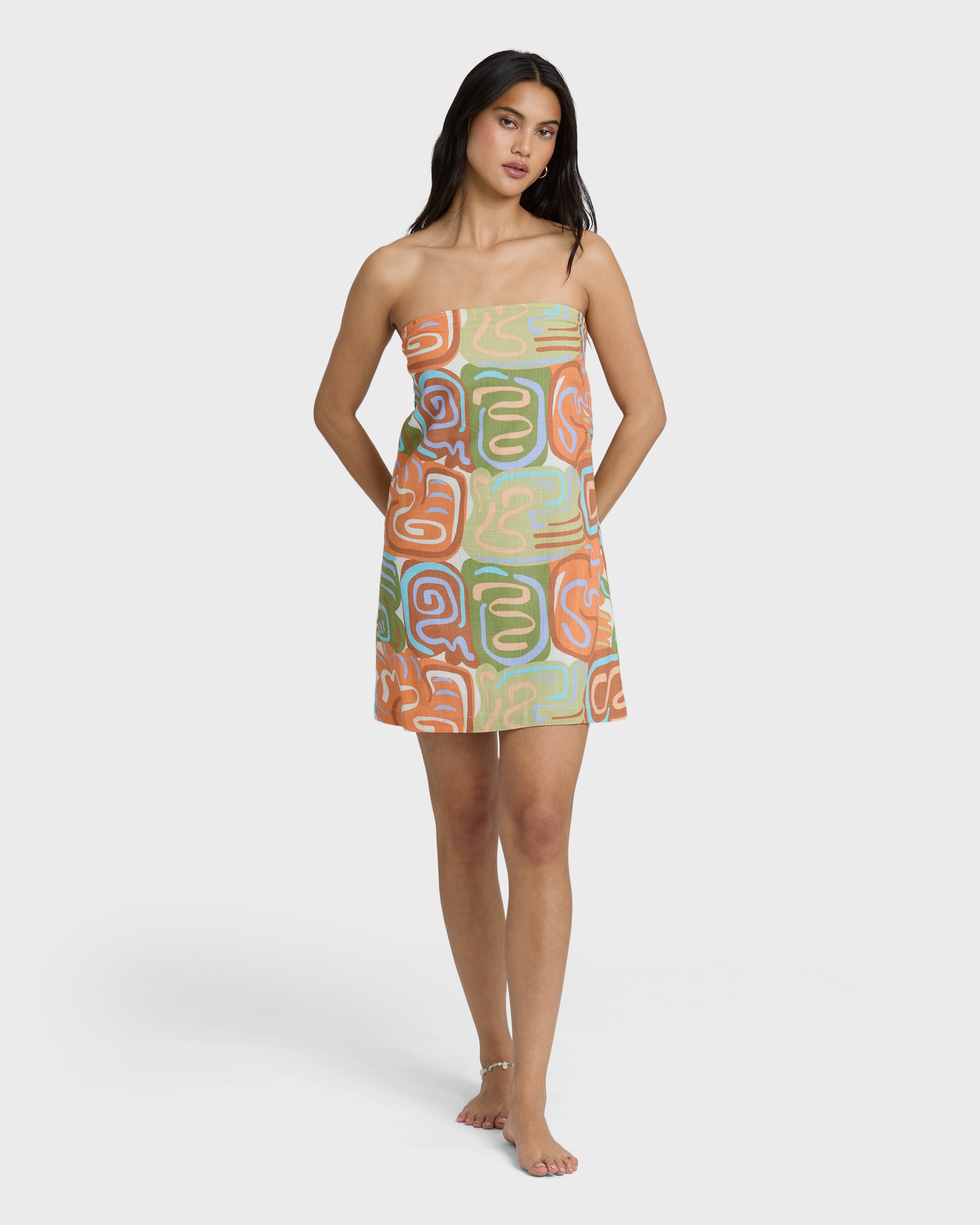 Enhance your natural shine with our Summer Glow Mini Dress. In a perfect body-skimming shape with smocking at the back, this strapless mini features breezy cotton slub fabric in a bold print that will surely become your go-to for every warm-weather occasion.Part of the Billabong Le Surf Le Love Collection — a sun-faded ode to sea-bound romance, where effortless silhouettes capture the spirit of a girl forever guided by the waves.