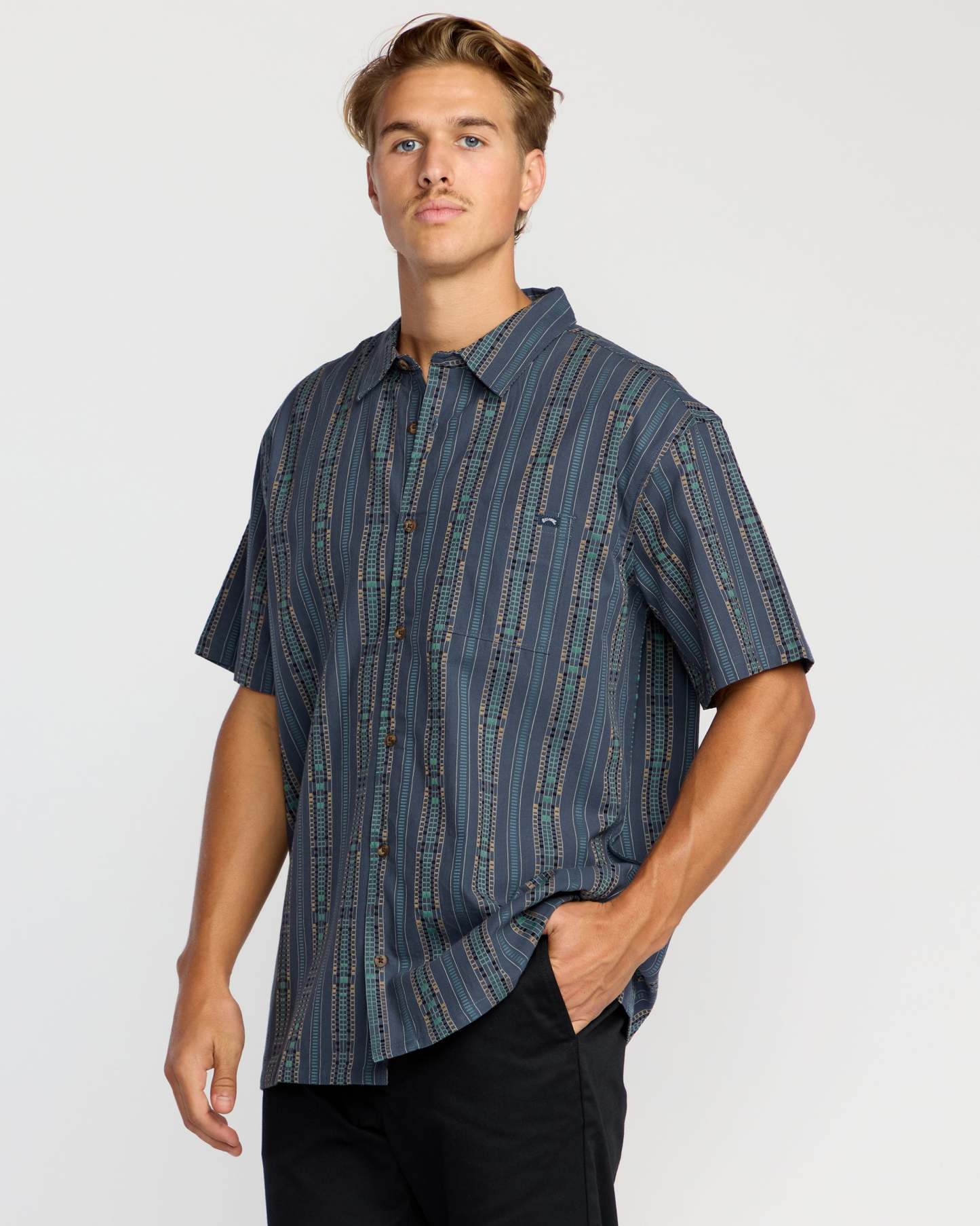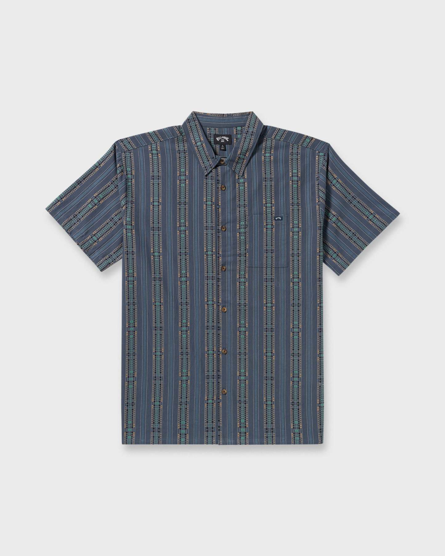 This jacquard short sleeve shirt is crafted from 100% cotton fabric. Regular fit, chest pocket, straight hem, garment washed for lived-in softness. Featured here in the Dark Navy colorway.