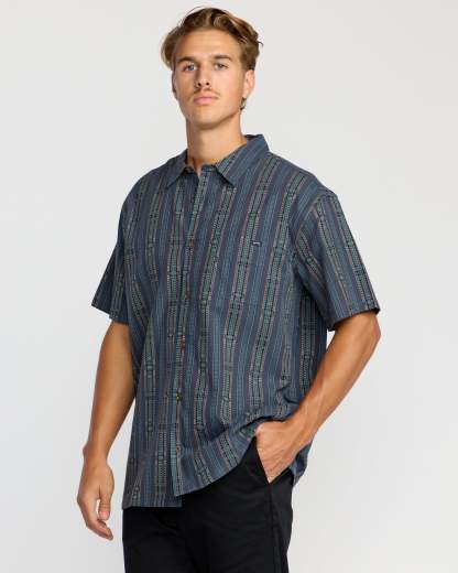 Sundays Jacquard Short Sleeve Shirt - Dark Navy