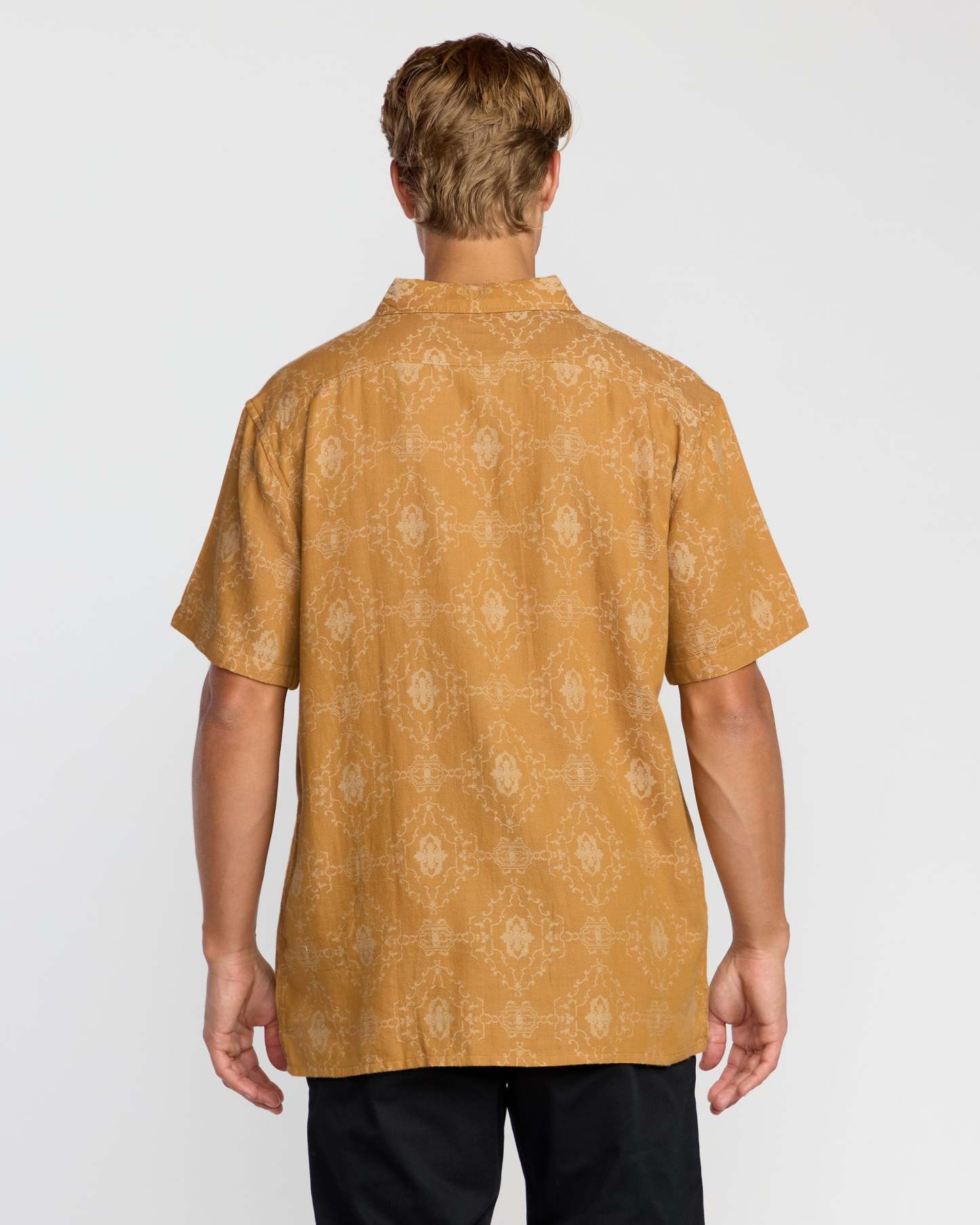 Old-school motifs meet modern comfort in the Sundays Jacquard Short Sleeve Shirt. Crafted in 100% cotton jacquard with a regular fit, this breathable piece features a chest pocket, straight hem and garment-washed softness. Featured here in the Golden Haze colorway.