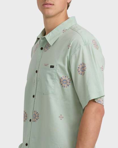 Crush Sunday cravings in the relaxed Sundays Mini Short Sleeve Shirt. Woven from a 52% Cotton / 48% Lyocell fabric blend with a mini print pattern, this regular-fit button-up features a garment-washed softness and utilitarian chest pocket detail. Featured here in the Seafoam colorway.