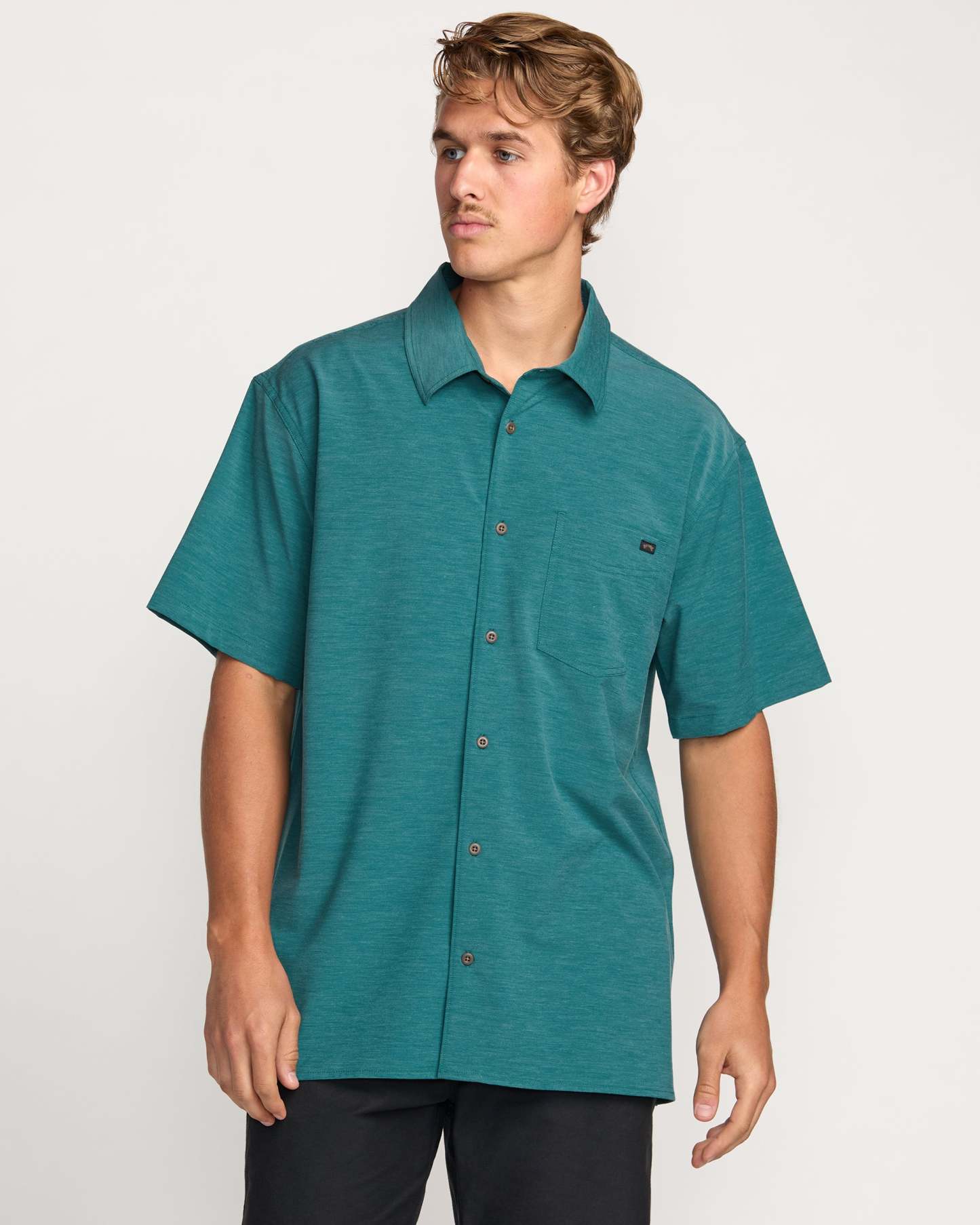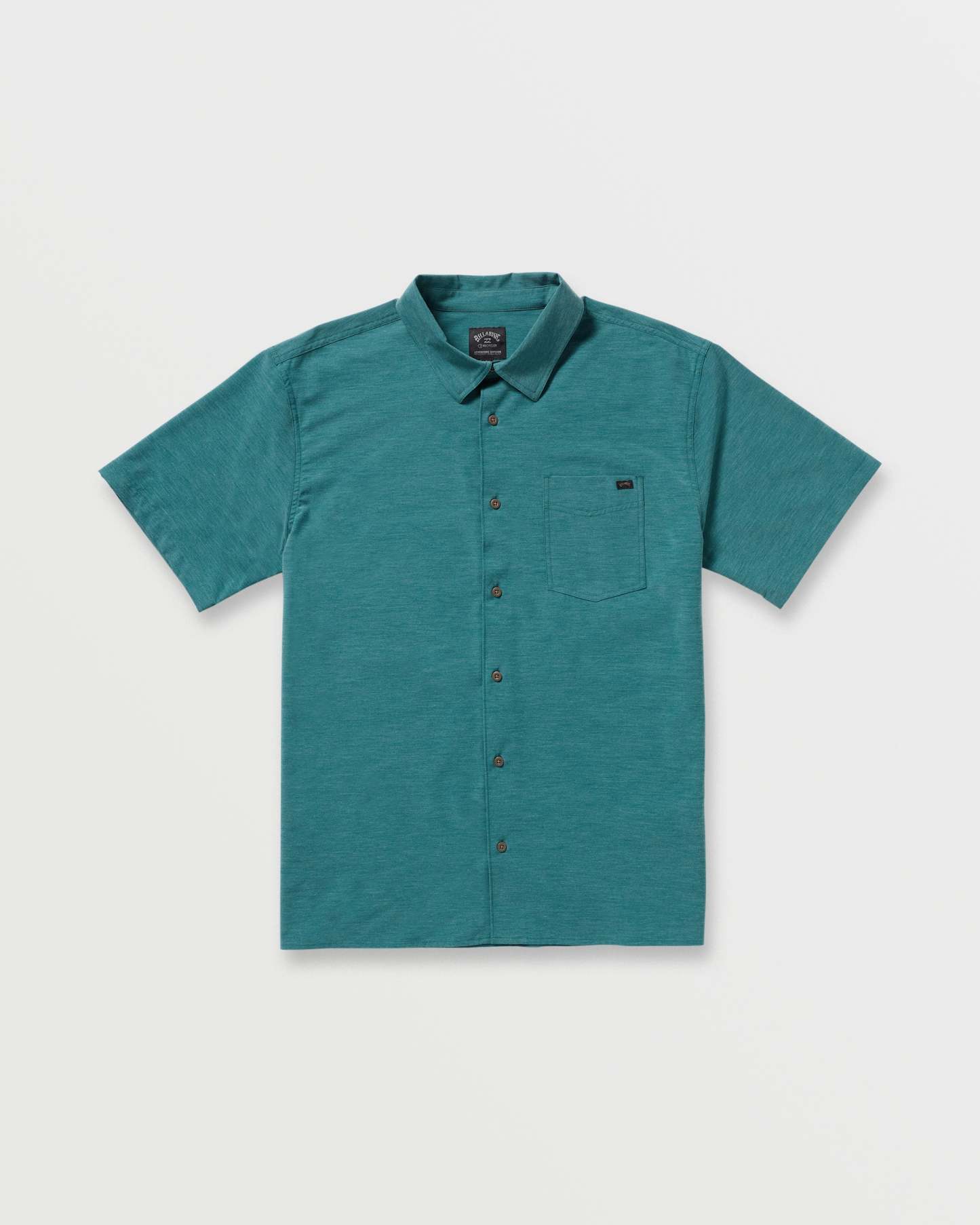 Crafted from partially recycled polyester, cotton and elastane, this regular-fit Billabong shirt combines casual comfort with active durability. Its garment-washed fabric feels perfectly broken in, while a chest pocket and straight hem lend effortless utility. Hit the beach, trails or just hang out in vintage-inspired versatility. Featured here in the Marine colorway.