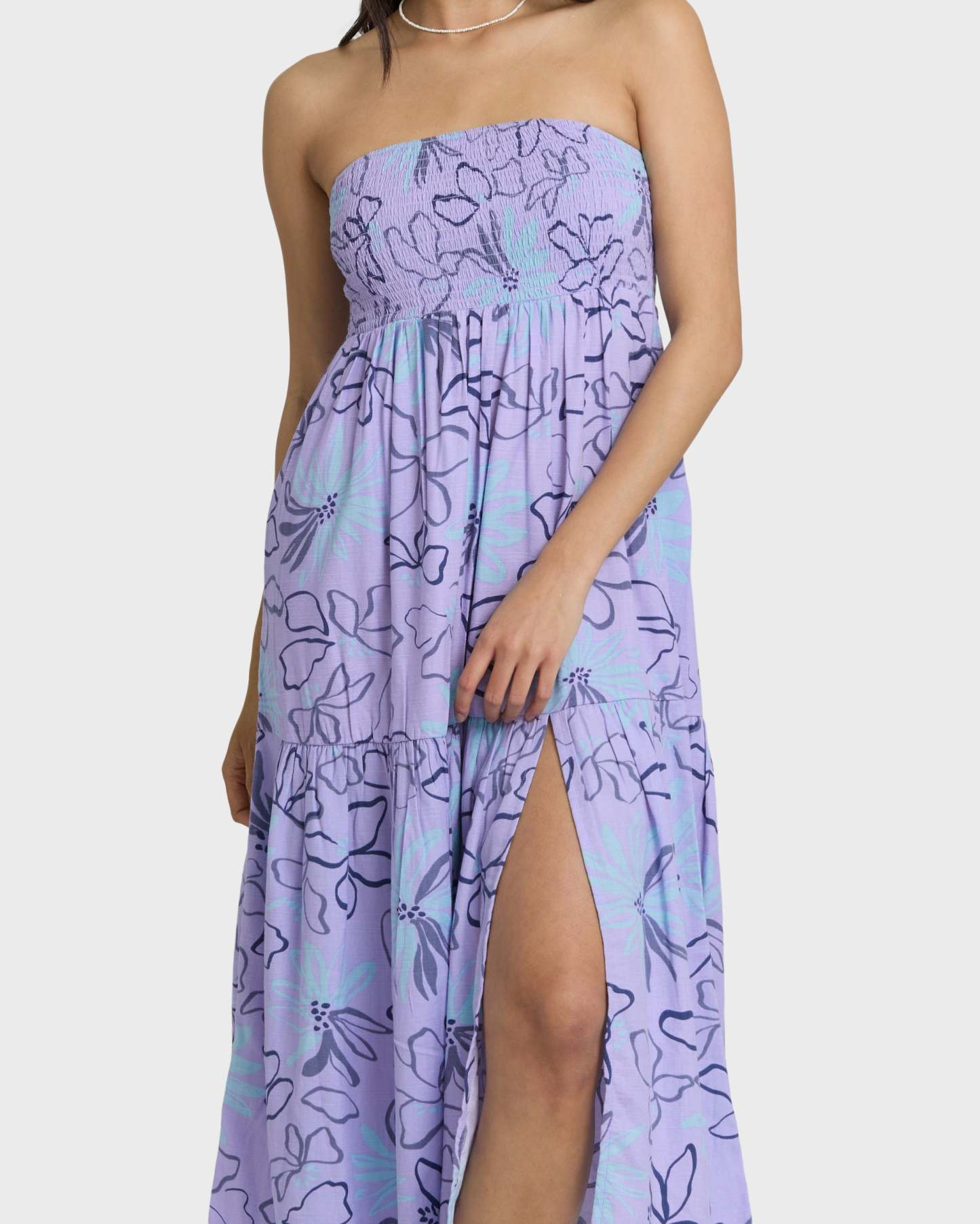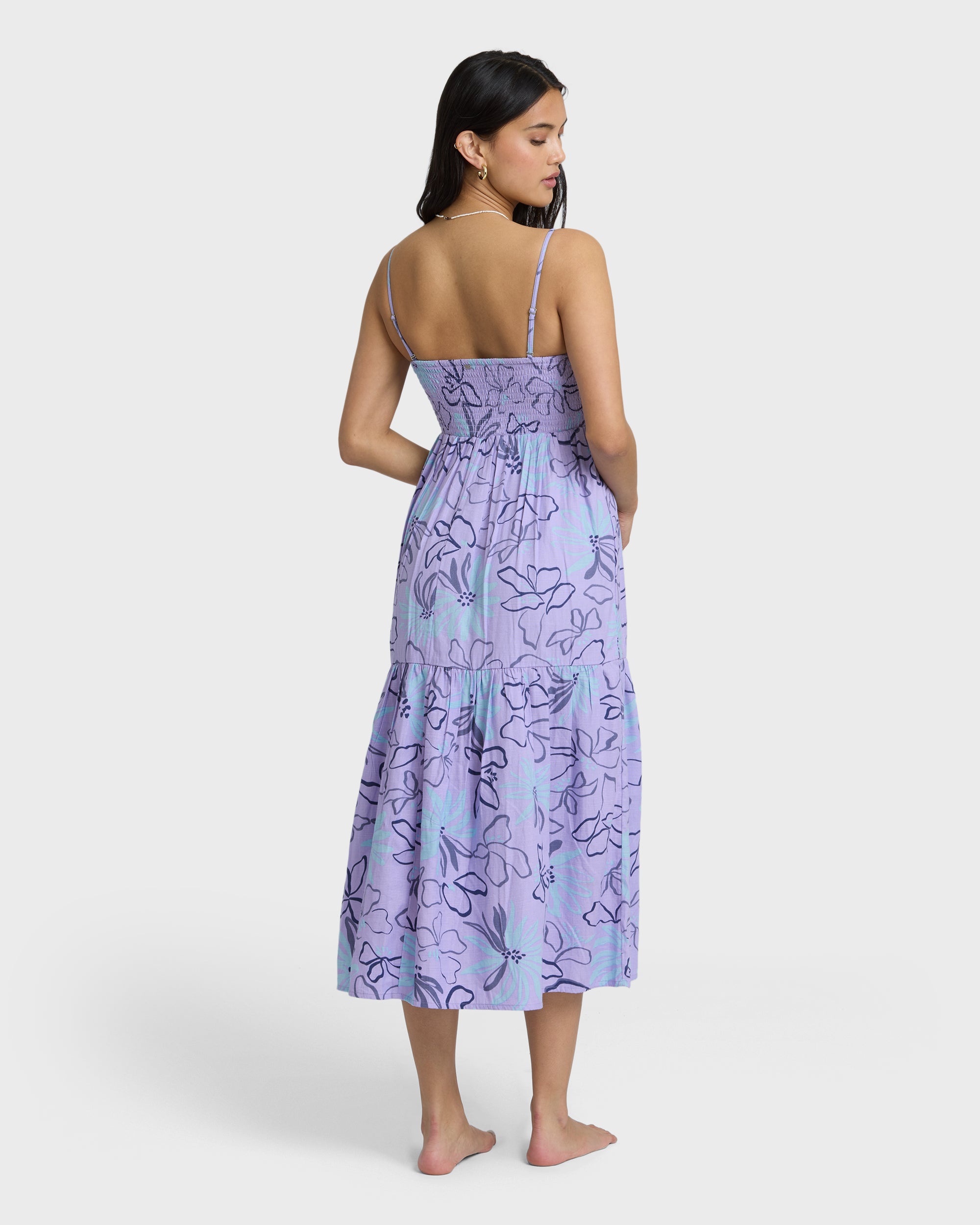 Step into summer with our Tropical Daze Midi Dress. Crafted from a cotton-viscose blend for all-day comfort, the smocked bodice offers a flattering fit, while the tiered skirt and side slit add twirl-worthy details. Wear with or without the removable straps for versatile styling options. Part of the Billabong Le Surf Le Love Collection — a sun-faded ode to sea-bound romance, where effortless silhouettes capture the spirit of a girl forever guided by the waves.