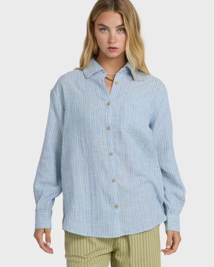 Drift through your day in our Wanderer Printed Long Sleeve Woven Top. This breezy button-down shirt features lightweight cotton double slub gauze with a relaxed, oversized fit that's perfect for layering. Complete with a front patch pocket for your essentials.Part of the Billabong Essentials Collection — sun-washed, surf-inspired staples made for effortless everyday wear.