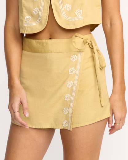Mini meets flirty in our wrap-style skort, featuring a fitted silhouette and pretty embroidery details. The self-tie closure adds a feminine touch, while the hidden zipper ensures a secure fit. Featured here in the Green colorway.